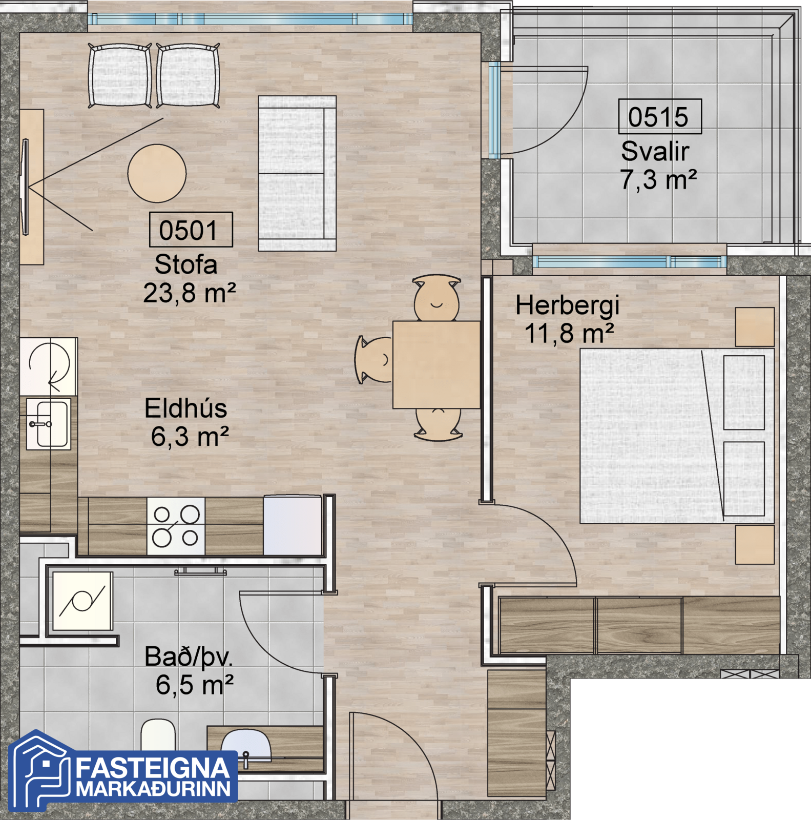 Allar nánari upplýsingar og tímapantanir á skoðun íbúða í húsinu er að fá á skrifstofu Fasteignamarkaðarins ehf. í síma 570-4500 eða á netfanginu fastmark@fastmark.is