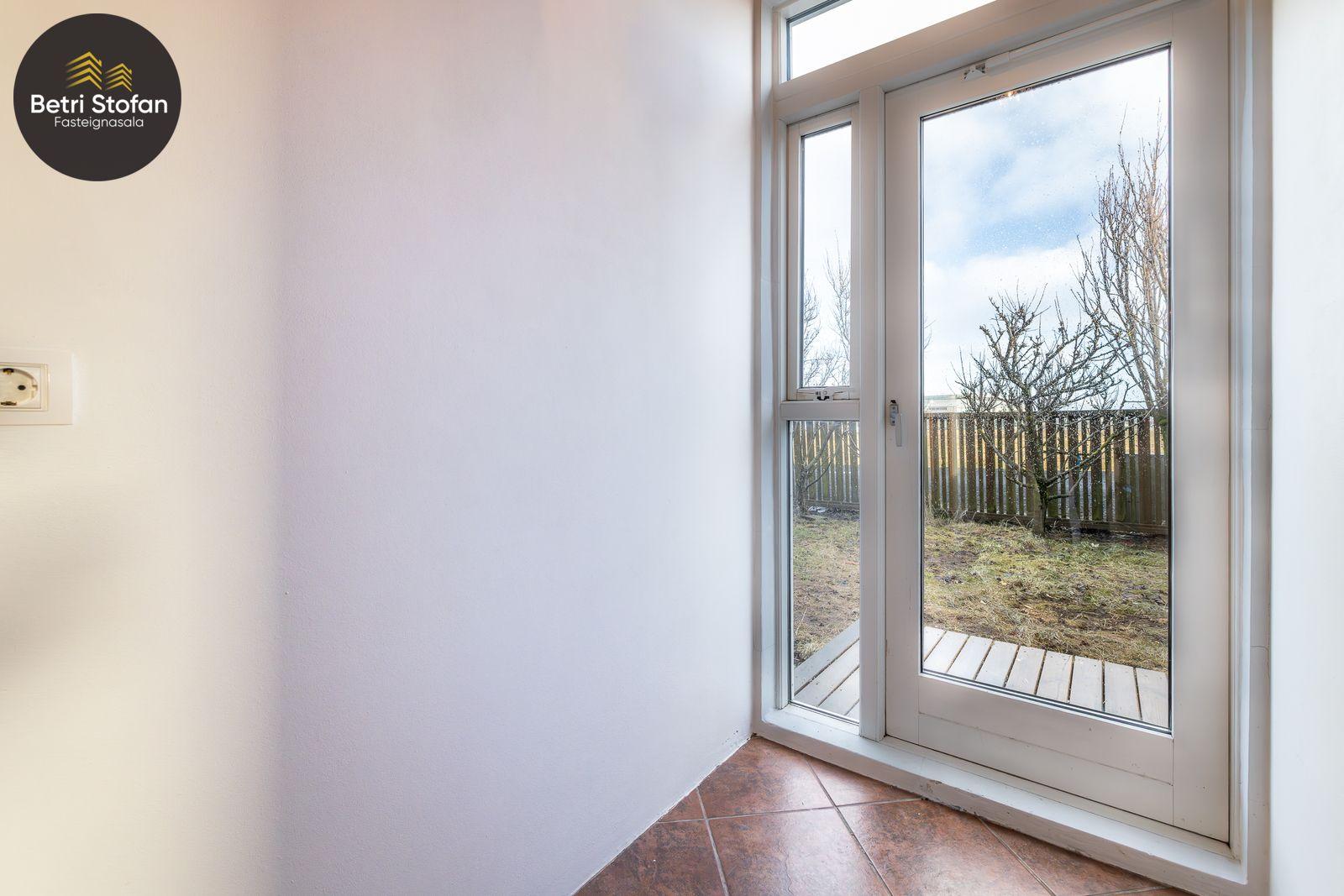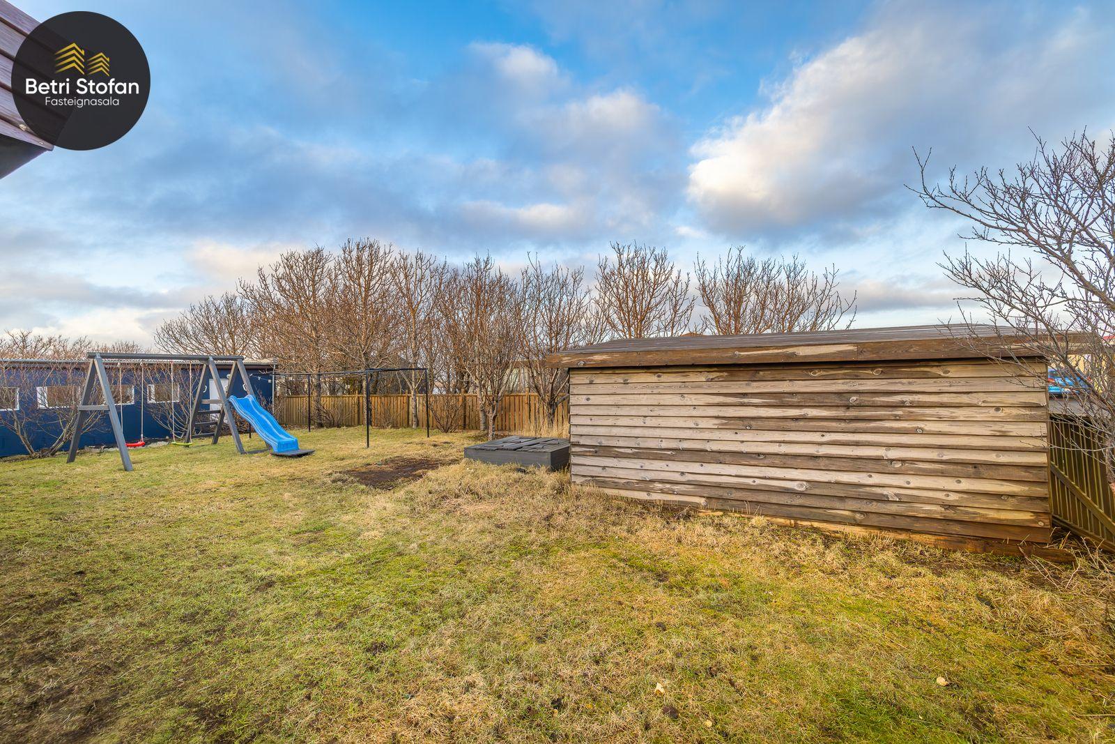 Geymsla: Innbyggð geymsla aftast í bílskúr. Gengið í geymslu úr bakgarði.