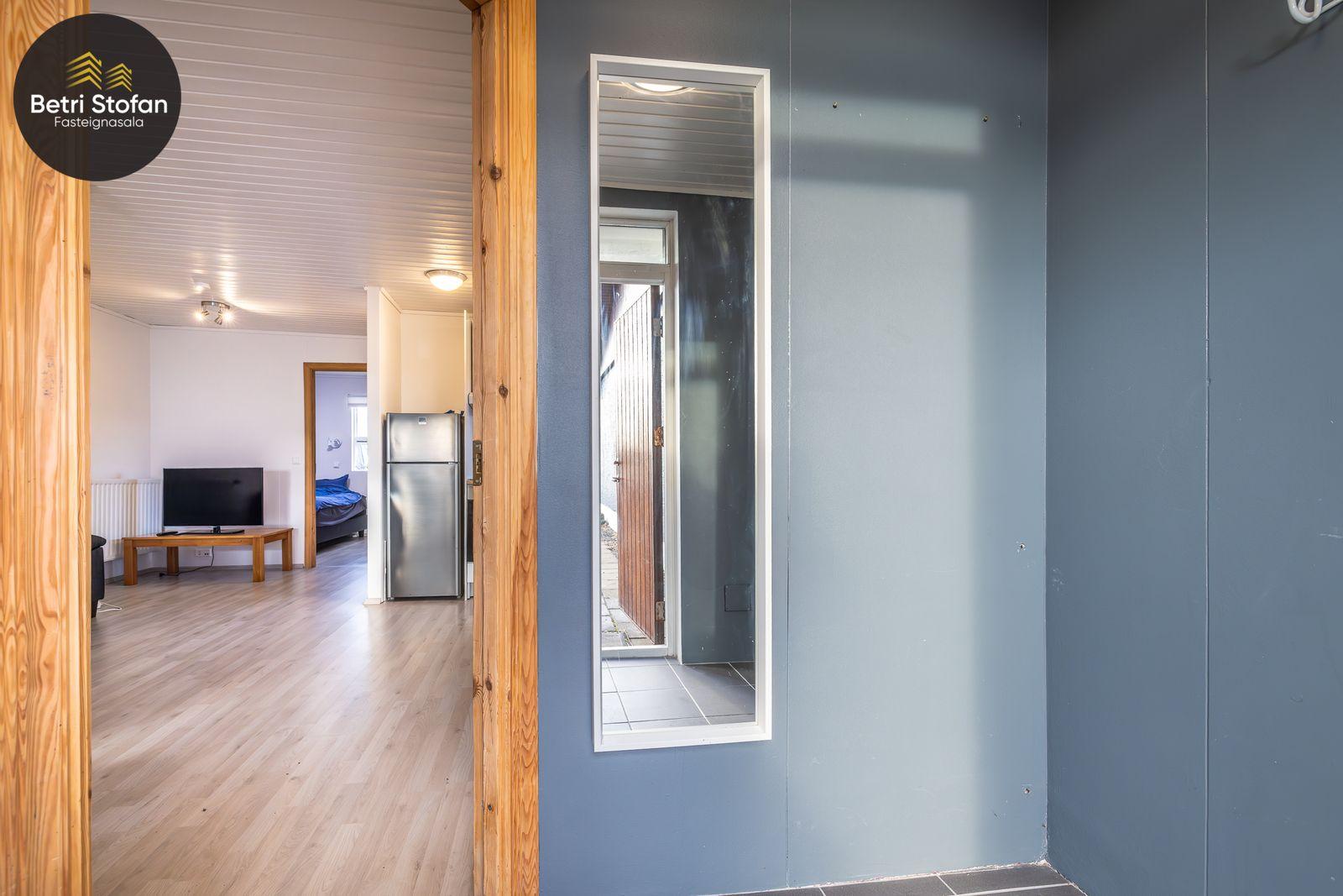 Forstofa: Gengið inn um sérinngang í forstofu. Flísar á gólfi og upphengdir snagar á vegg.