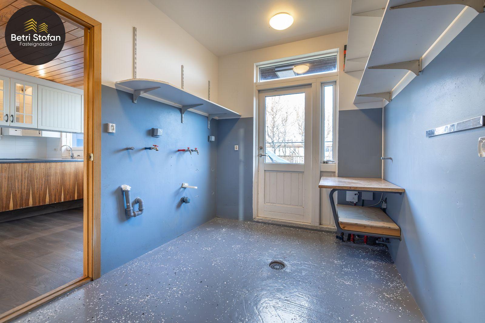 Þvottahús: Innaf eldhúsi. Rúmgott. Gengið út í bakgarð úr þvottahúsi.