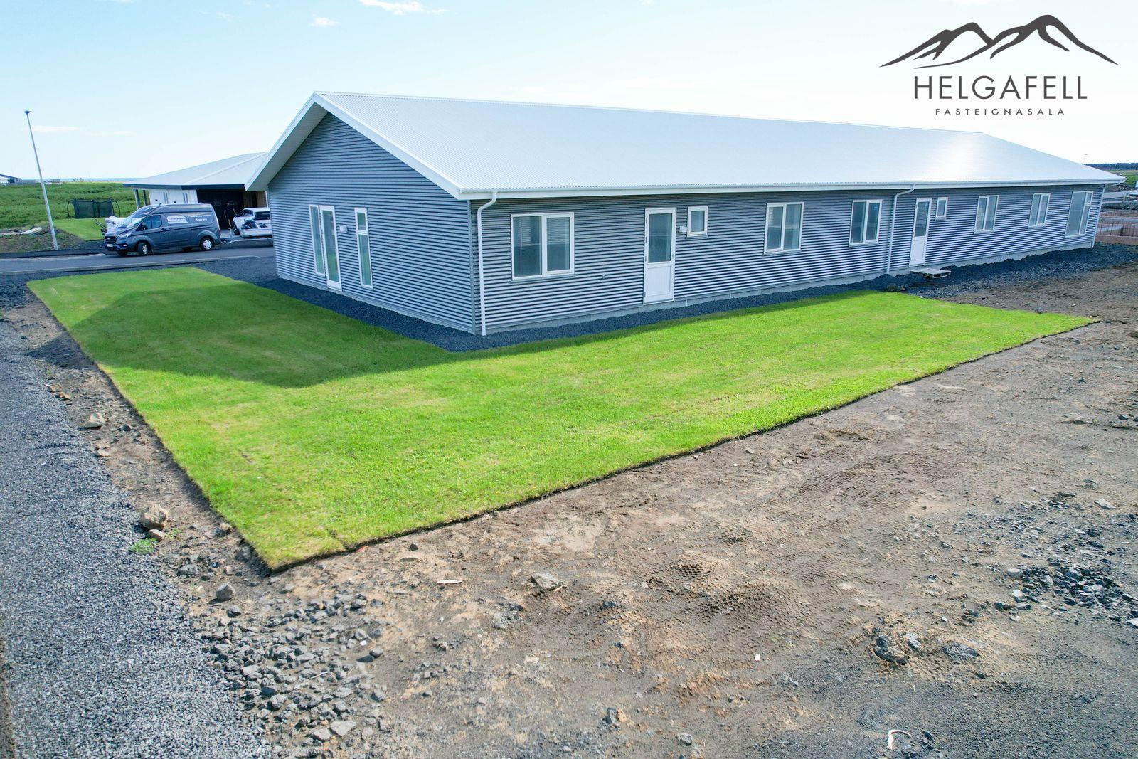 Húsið: Húsið er byggt 2025 og er úr úr timbri og klætt með grárri álklæðningu og hvítum álþakköntum, járn er á þaki. Innfelld lýsing er í flestum rýmum. Gólfhiti er í húsinu og hitastýringar eru í öllum rýmum. Ídráttarrör er komið fyrir heitan pott á baklóð.