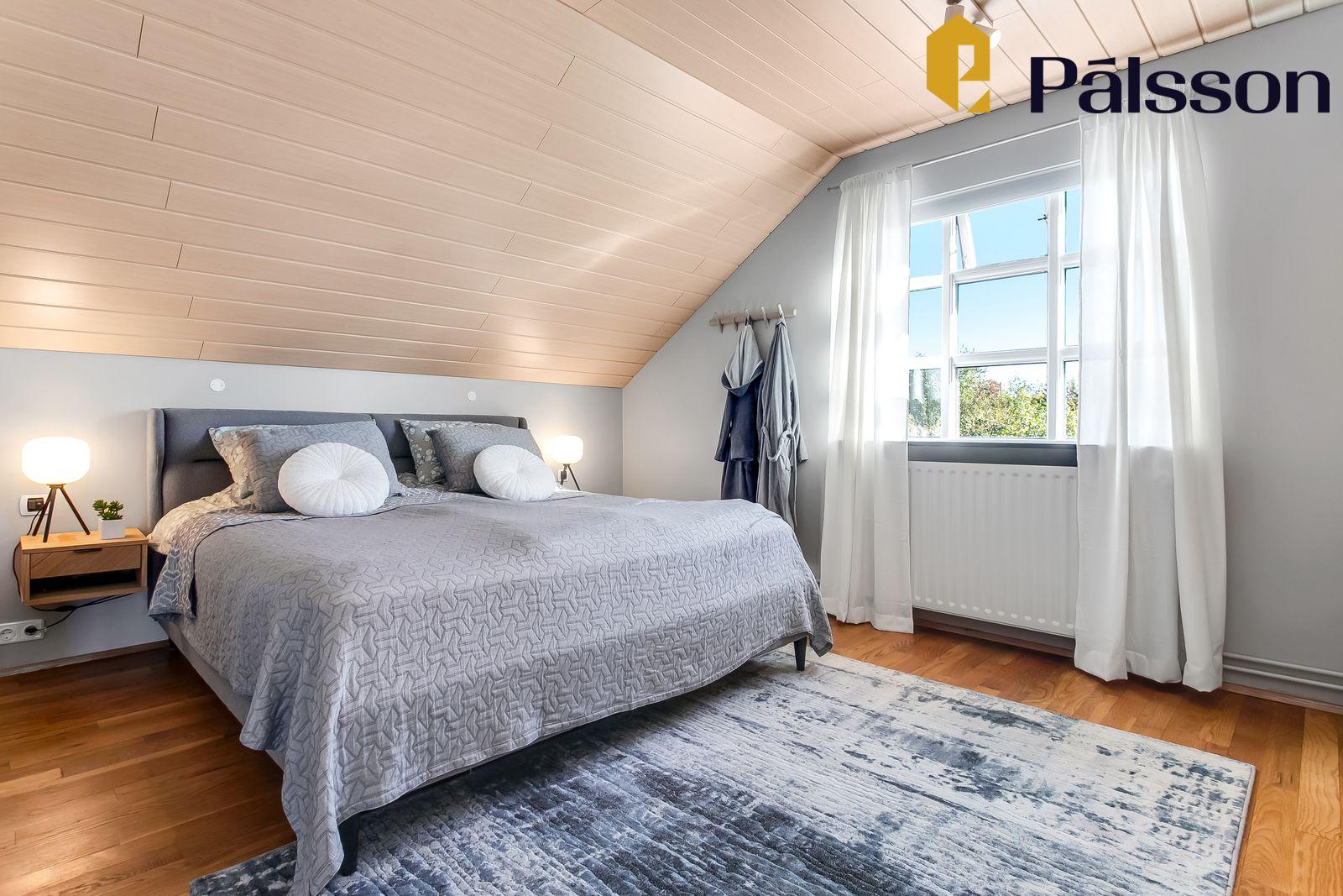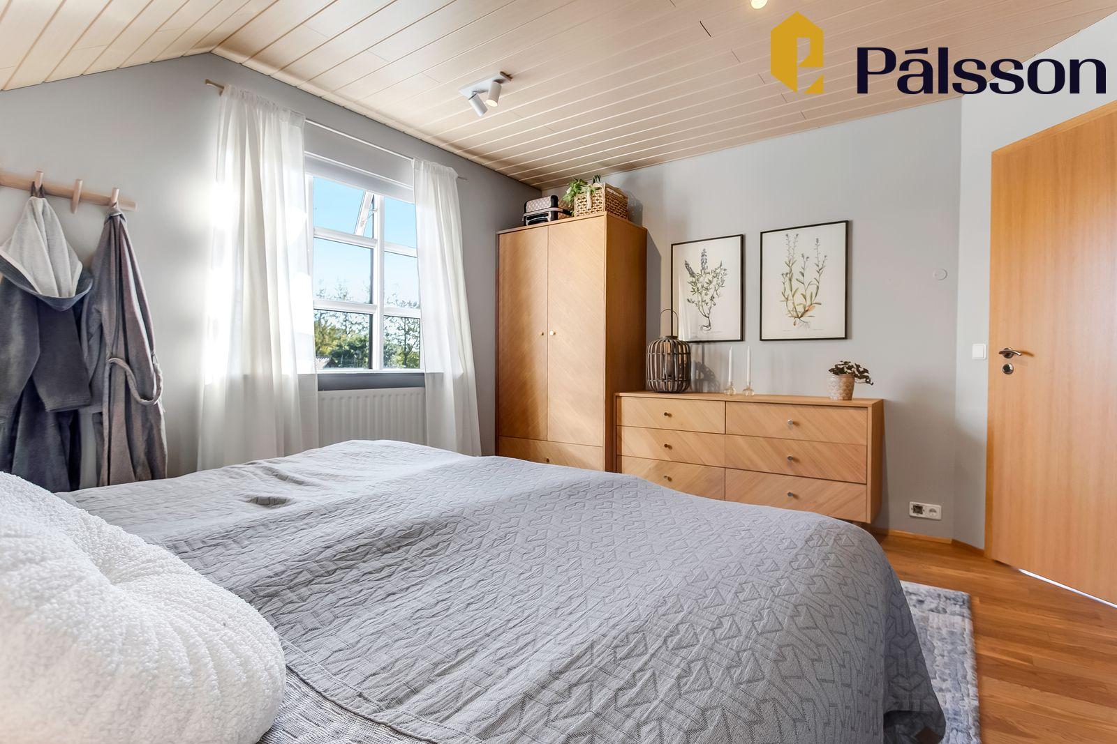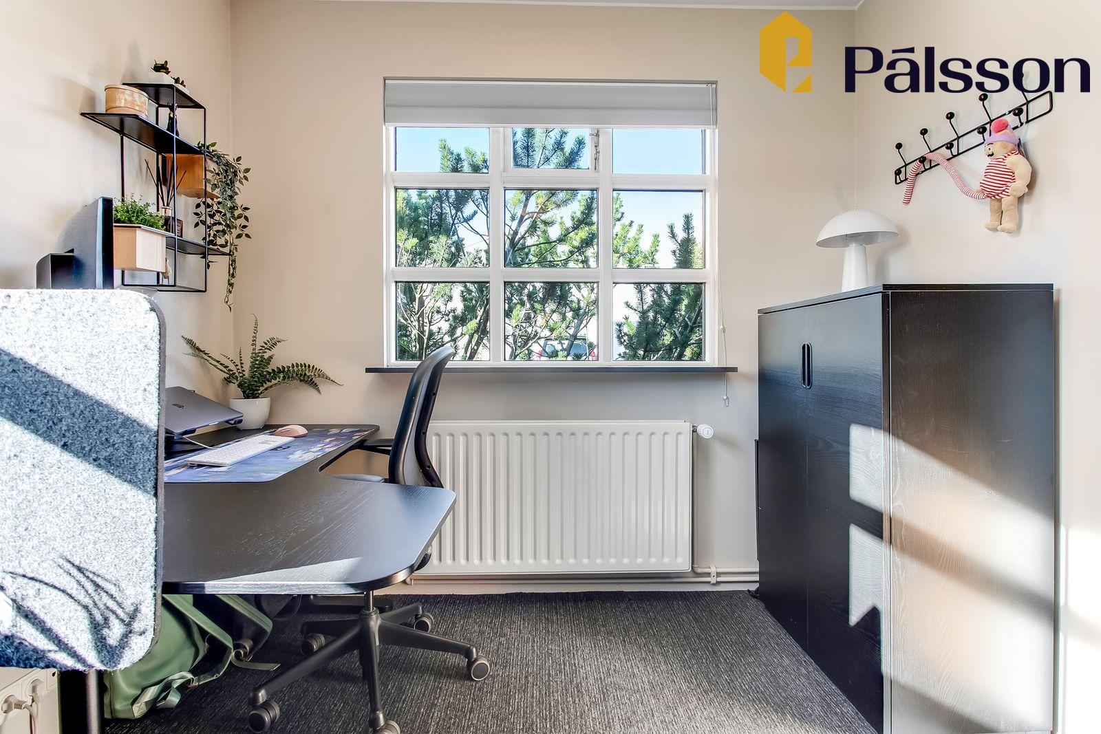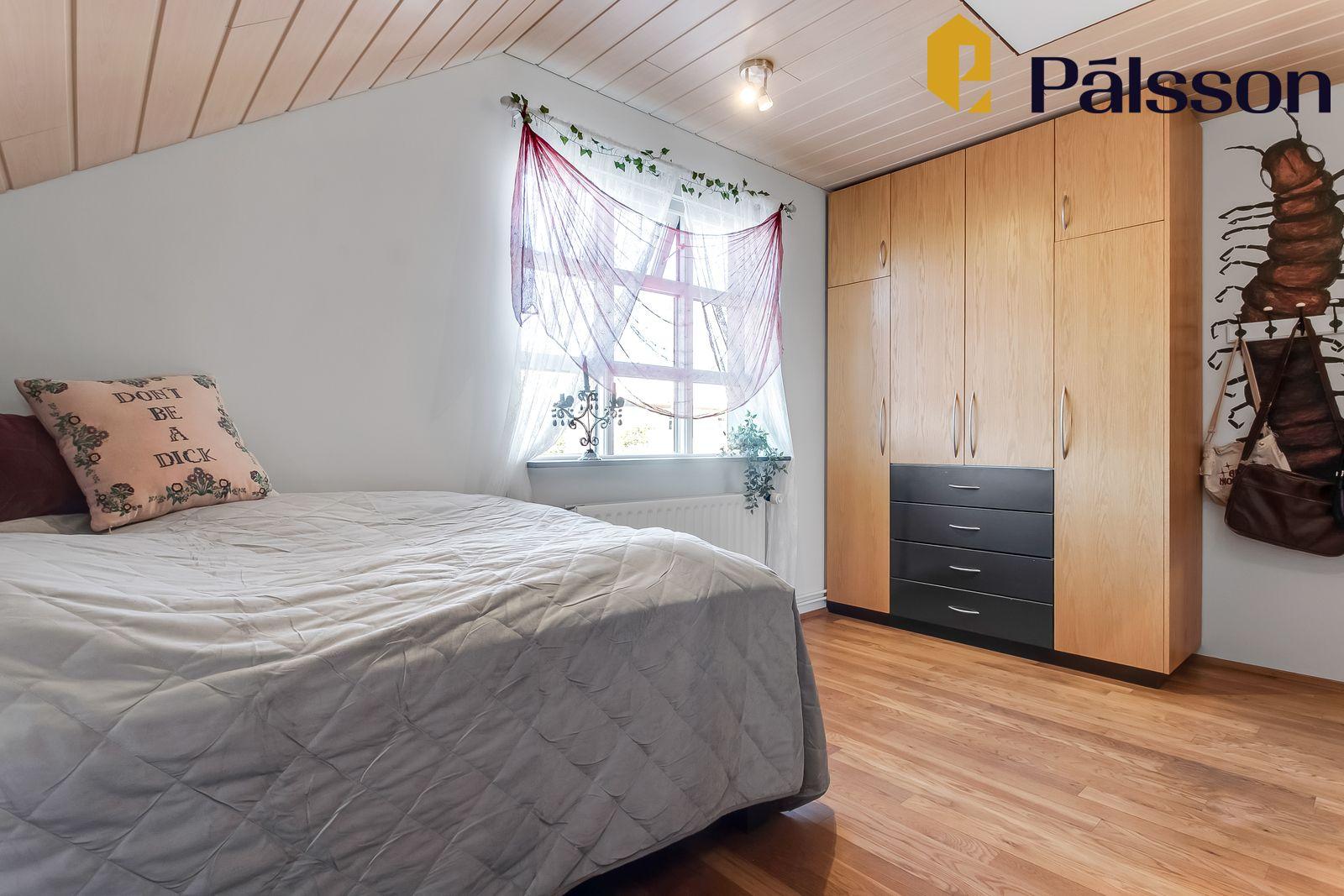 Þrjú herbergi, öll parketlögð – tvö þeirra með fataskáp