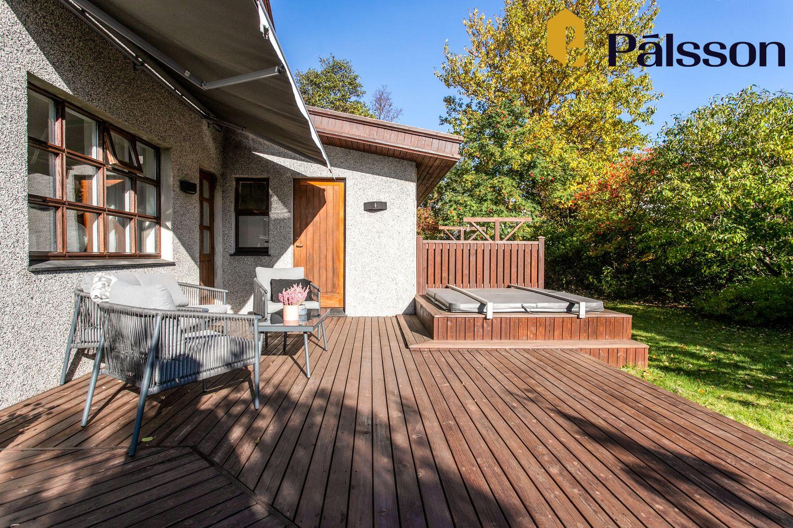 - Stór og skjólgóður garður með sólpalli, markísu og heitum potti