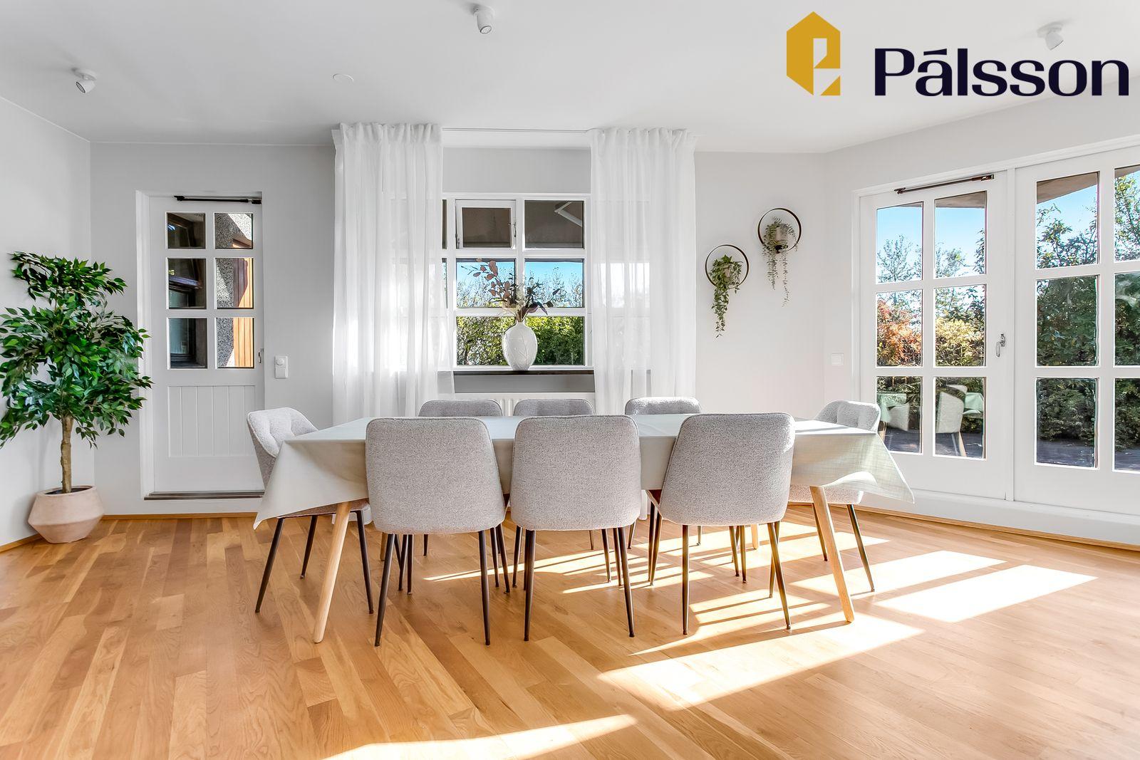Þetta er einstaklega vandað og vel við haldið einbýlishús sem sameinar glæsilega hönnun, notagildi og frábæra staðsetningu.