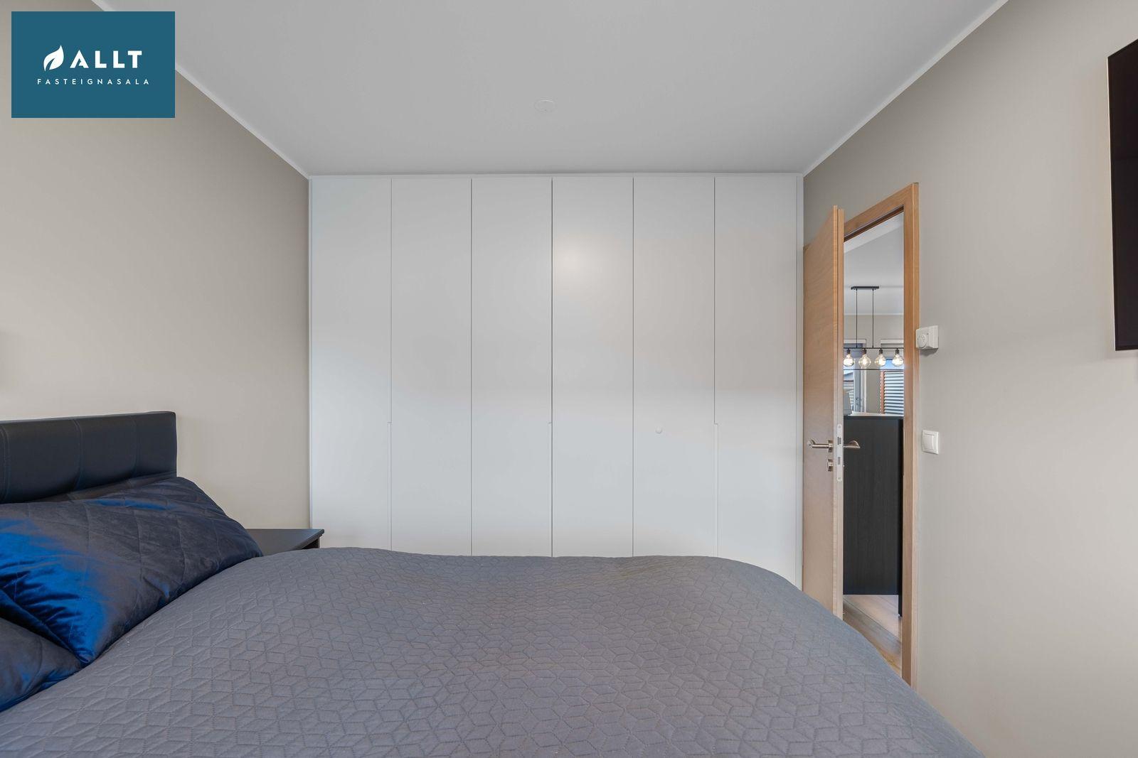 Svefnherbergin eru tvö, hafa bæði parket á gólfi og fataskápa.