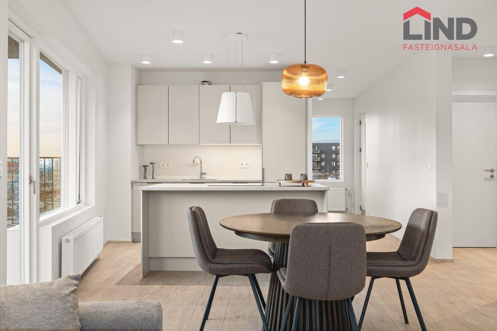 Íbúð 201: Er 92,8 fermetra 3ja herbergja íbúð á annarri hæð með góðum 6,1 fermetra svölum. Þar af er geymsla 3,1 fermetrar. Afhending er áætluð í mars/apríl 2026 en þó með fyrirvara um að öryggisúttekt sé komin á húsið.