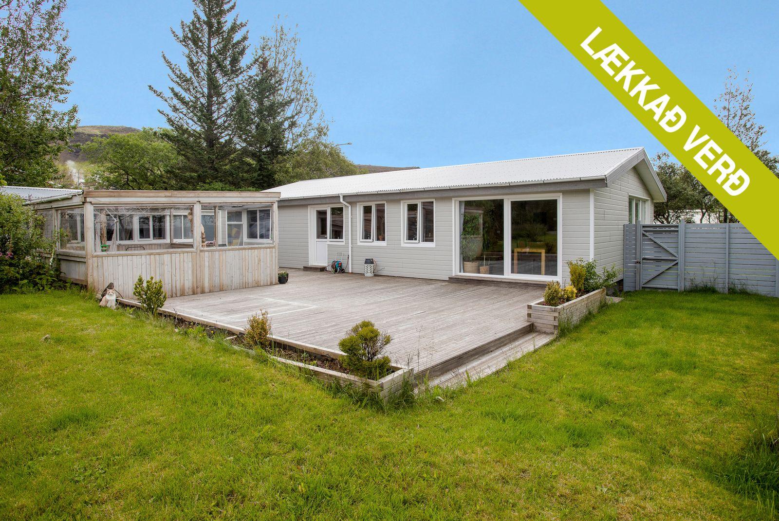 garður umlykur húsin, yfirbyggður pallur í bakgarði, 13,5 m2 gróðurhús,