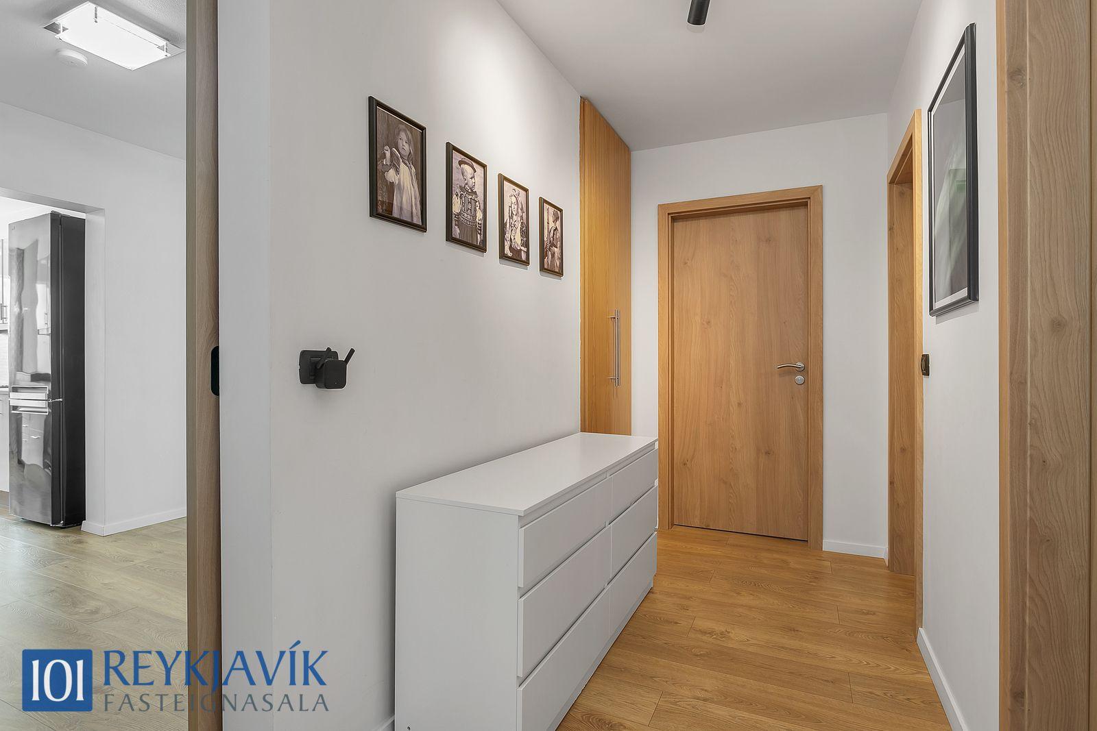 Svefnherbergisgangur samanstendur af þremur svefnherbergjum, baðherbergi og parketlögðum gangi með innbyggðum skáp.