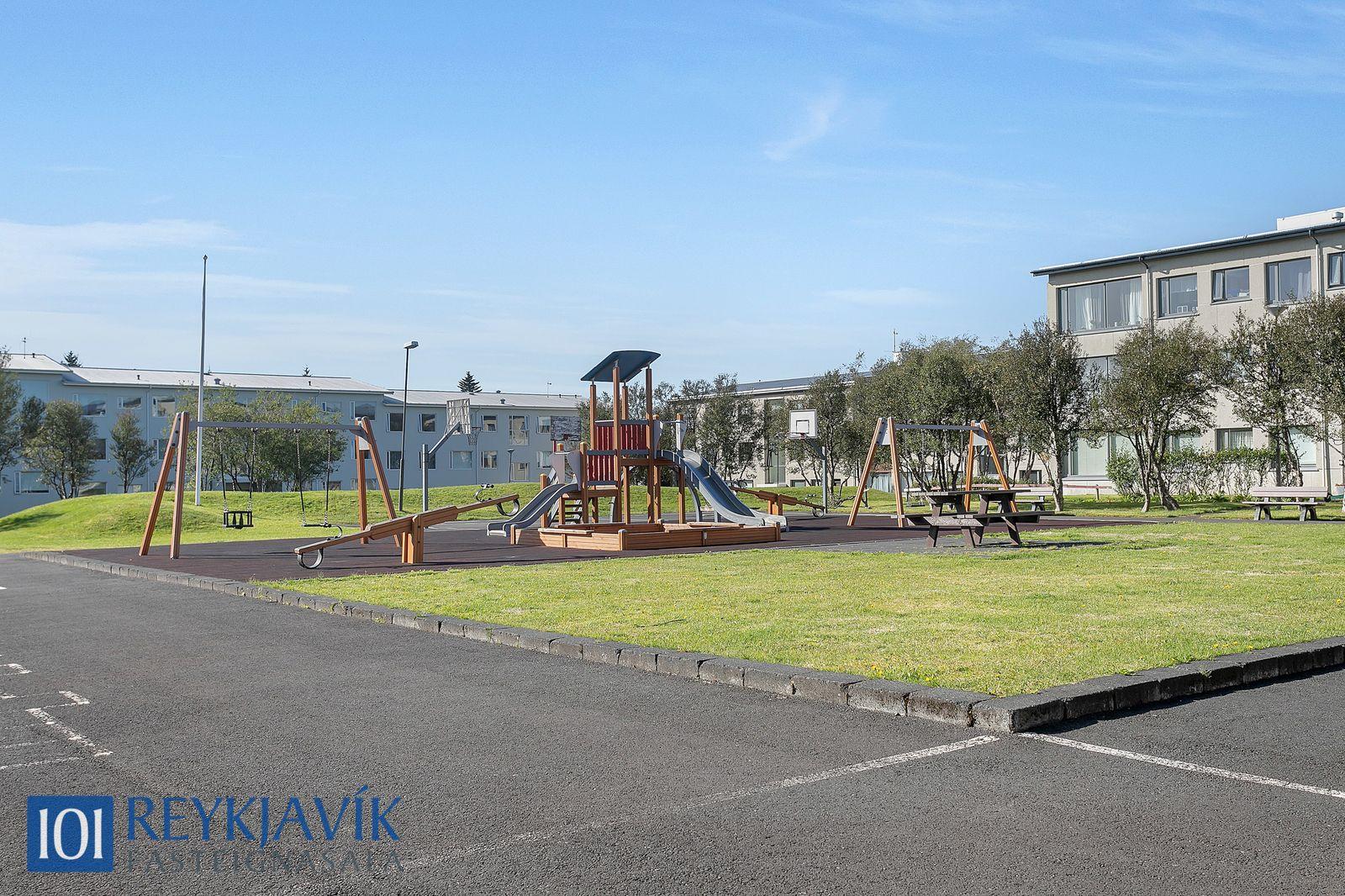 þvottahúsi.Bílastæði fyrir hús eru á sameiginlegri lóð.Skipt um alla ofna í íbúð fyrir ca. 8 árum.2019 Raflagnir endurnýjaðar í íbúð að hluta, rafmagnstafla er nýleg, skoðuð af fagmönnum er eldhús var endurnýjað að hluta.2019-2020 Leiktæki á sameiginlegri lóð endurnýjuð.2020 Innihurður endurnýjaðar.2020 Skólplagnir fóðraðar.