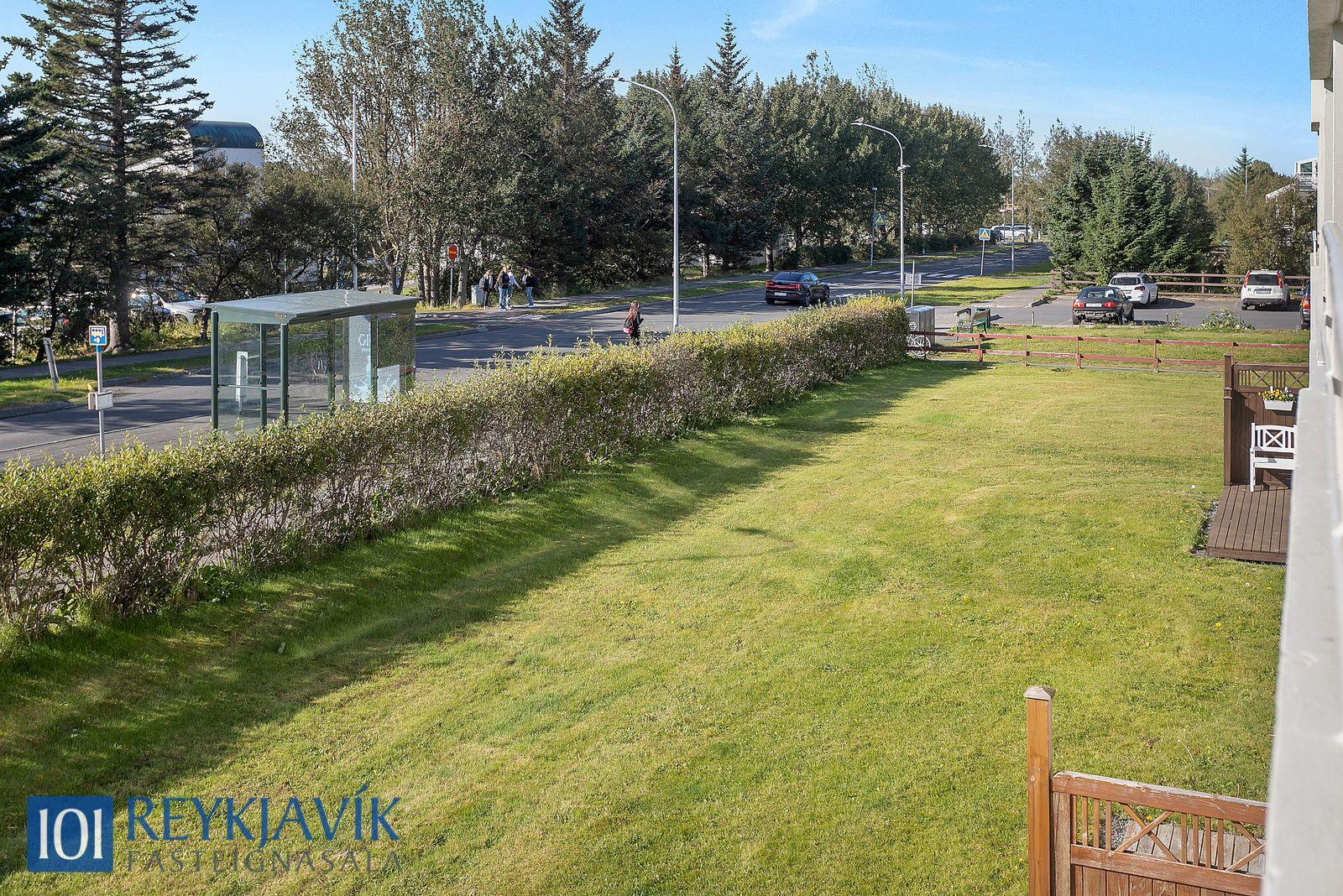 Elliðaárdalurinn skammt undan ásamt hjóla og gönguleiðum.