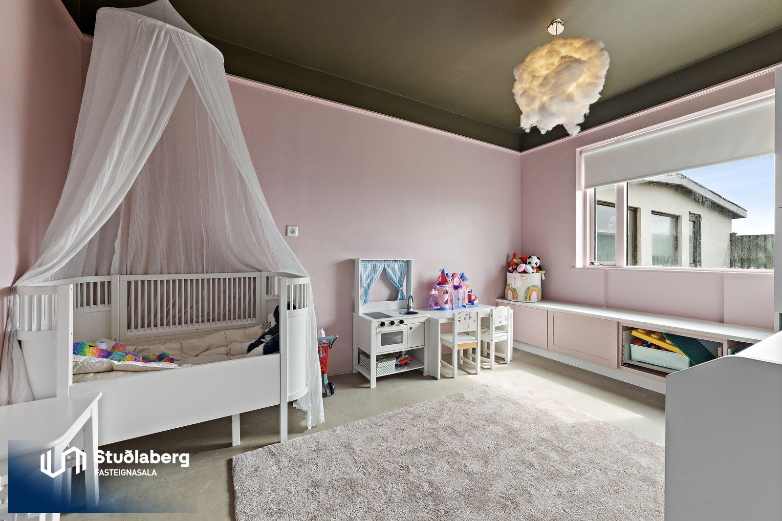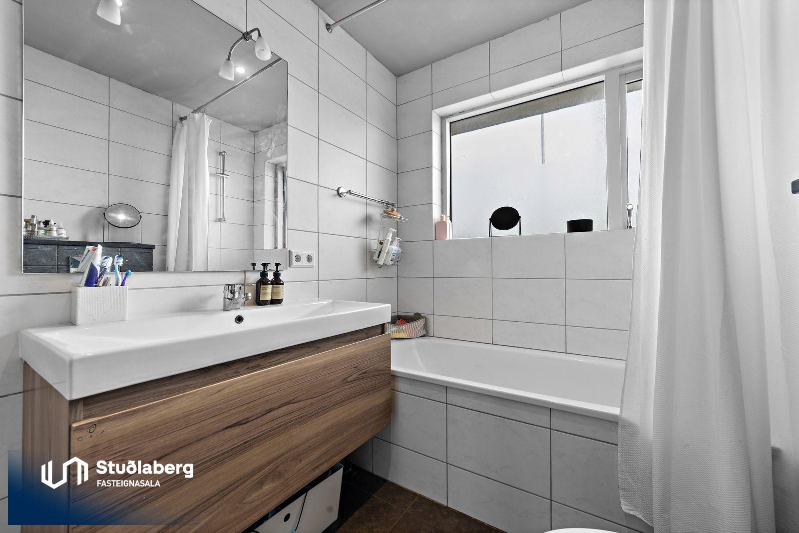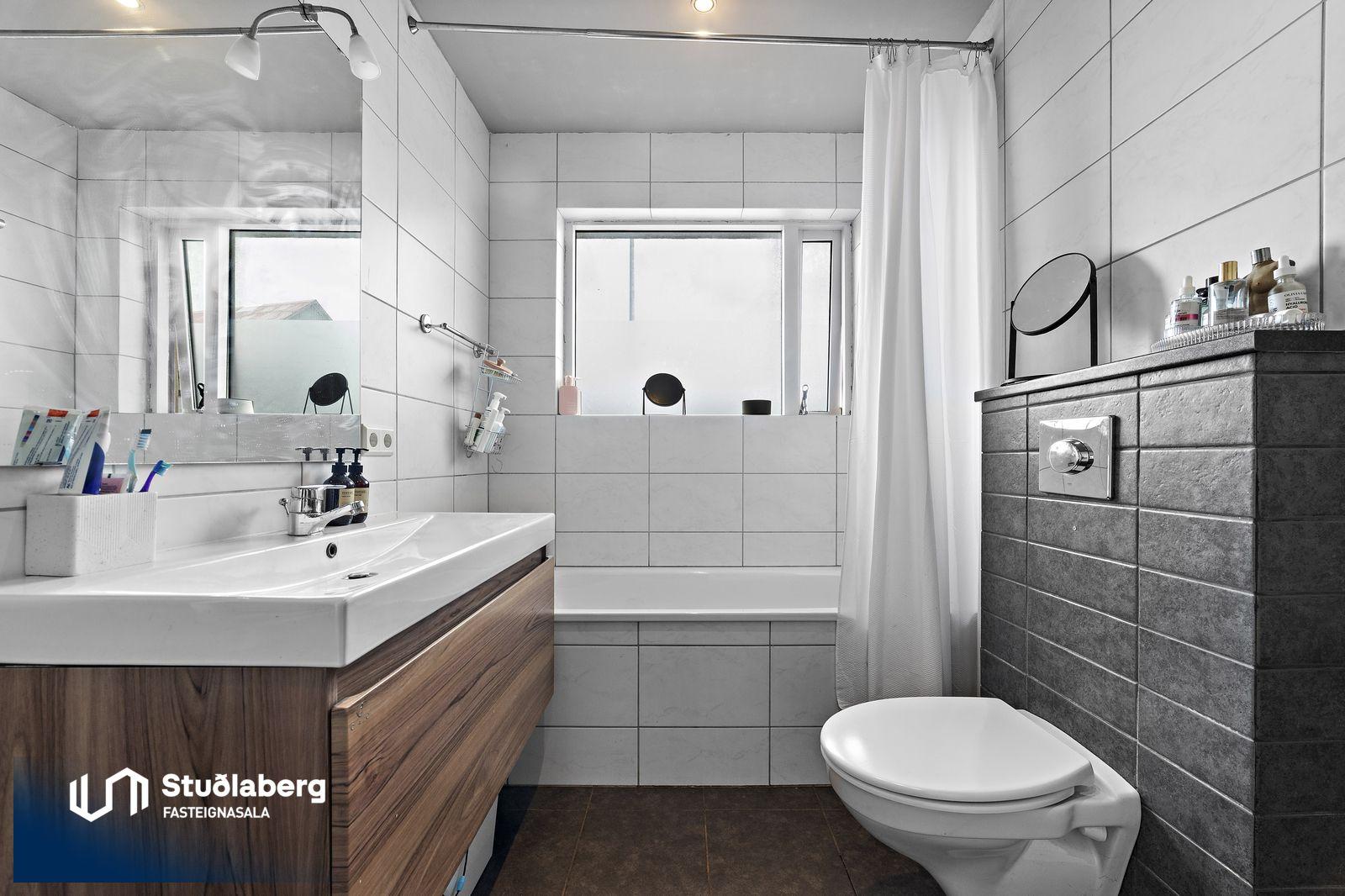 Bílskúr: Búið er að útbúa herbergi í bílskúrnum, þar er parket á gólfi, baðherbergi með flísum á gólfi, salerni, snyrtileg innrétting og sturtu.