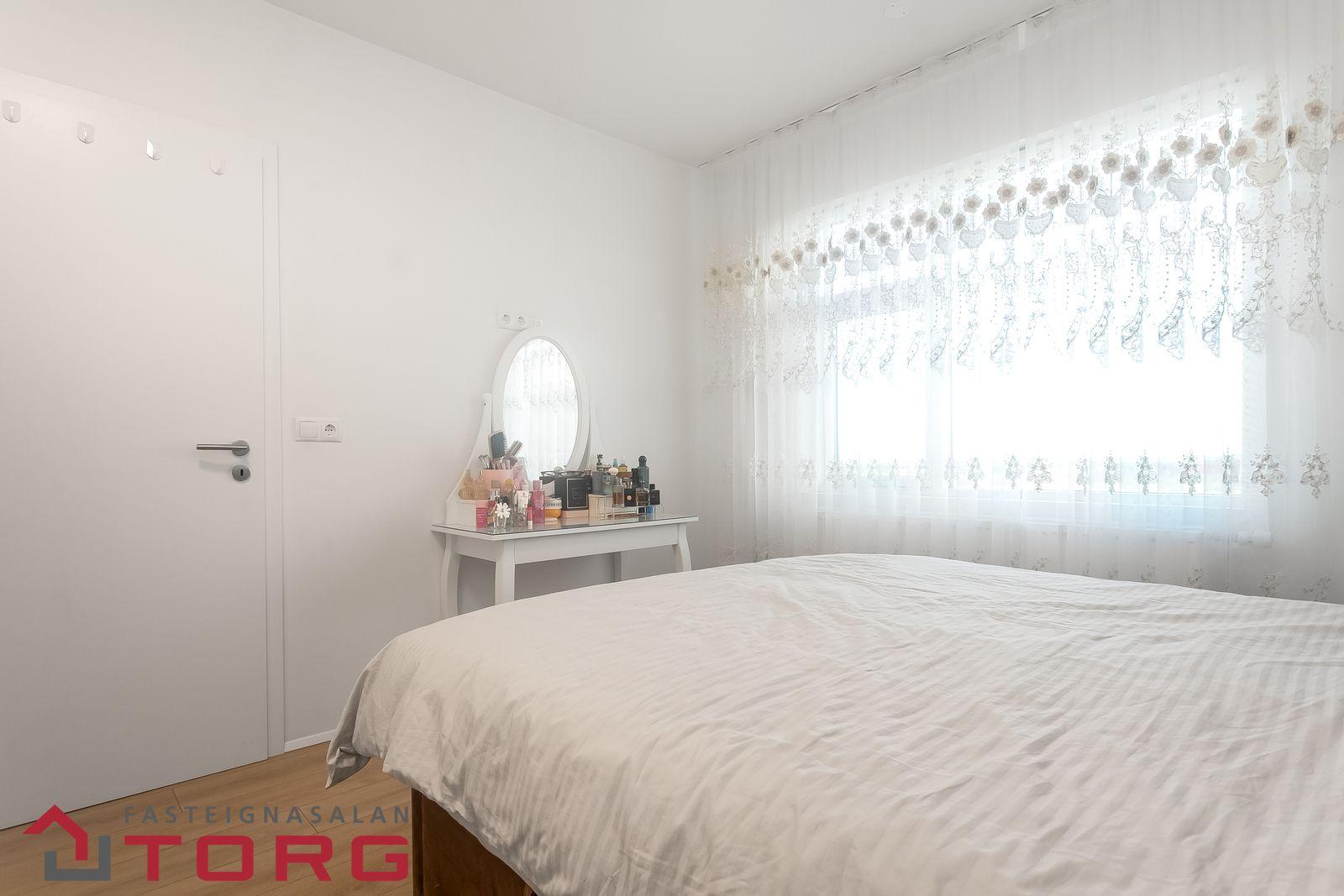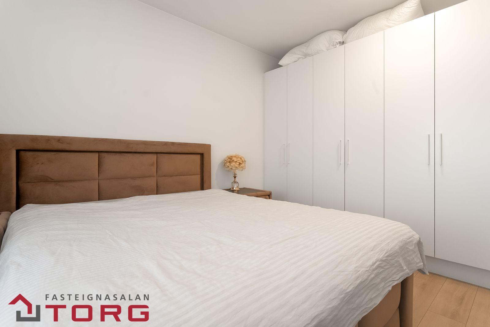 Svefnherbergi er rúmgott með góðu skápaplássi.