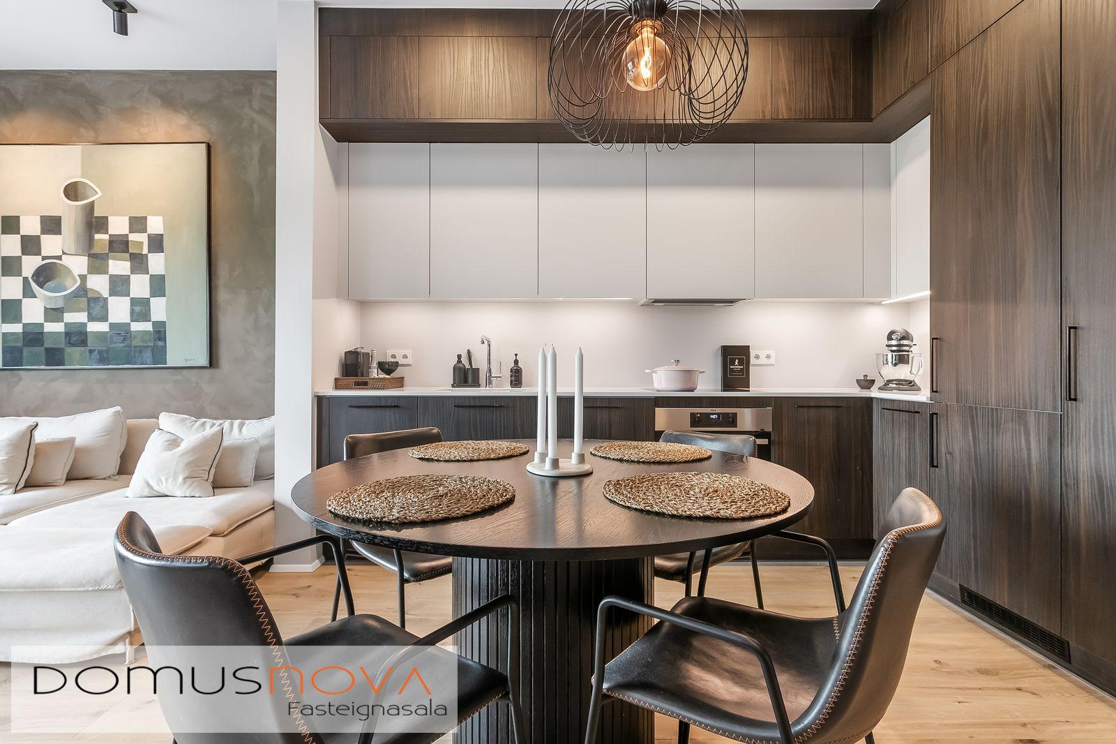 Einstök hönnun er á ytra útliti hússins, lóð og aðkomu. Innanhúshönnuður kom að hönnun íbúðarinnar, lögð var mikil áhersla á gæða efnisval og góðar lausnir. Vandaðar sérsmíðaðar innréttingar frá VOKE III, parket og flísar frá Ebson, Quartz steinn frá Technistone er á borðplötum í eldhúsi og baðherbergi.  Eldhústæki eru frá AEG, blöndunartæki frá Grohe og hreinlætistæki frá Duravit.