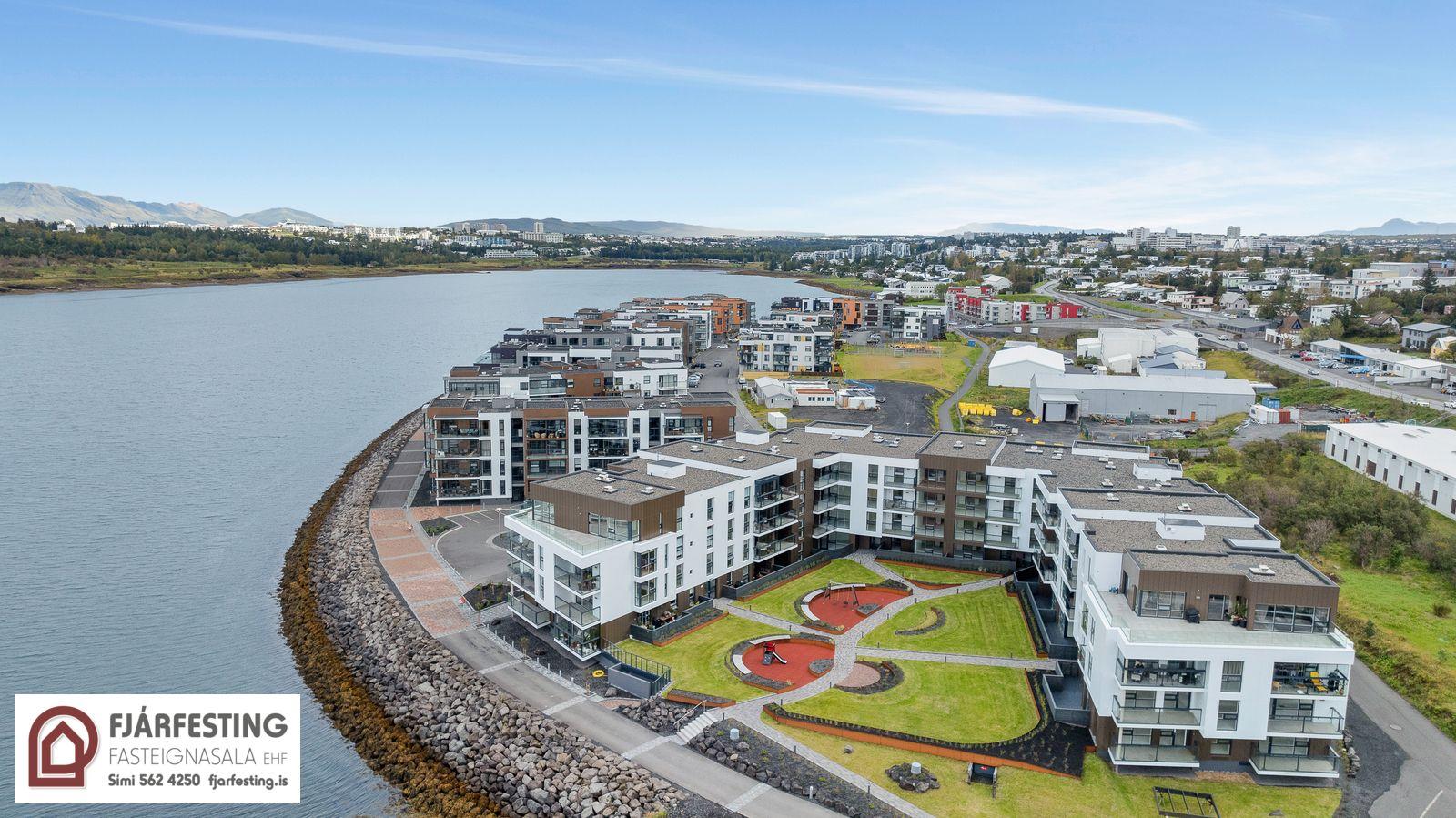 FJÁRFESTING FASTEIGNASALA, SÍMI 562-4250, ER MEÐ TIL SÖLU GLÆSILEGA 3JA HERB. ÍBÚÐ Á 1. HÆÐ Í NÝJU LYFTUHÚSI VIÐ NAUSTAVÖR 66 Í KÓPAVOGI. Glæsileg og vel skipulögð 3ja herbergja íbúð á 1. hæð, merkt 0102 í fallegu nýju álklæddu lyftuhúsi. Íbúðin sjálf er 114 fm. Sérgeymsla í kjallara er 10 fm. Samtals er eignin því skráð 124 fm. Sjávarútsýni. Rúmgóð verönd og svalir Stæði í lokaðri bílageymslu fylgir. Íbúðin er öll hin glæsilegasta með fallegum innréttingum og fataskápum frá Brúnás. Blöndunartæki frá Tengi og AEG eldhústæki. Hiti er í gólfum. Naustavör 60-66 er nýtt 4ra hæða fjölbýlishús sem er í nýju bryggjuhverfi við Kársnes í Kópavogi.