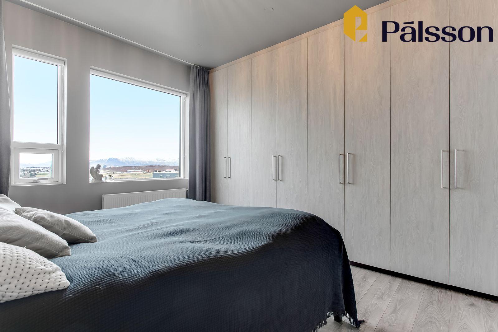 Svefnherbergi: Svefnherbergin eru þrjú, öll með mjög góðum fataskápum og harðparketi á gólfi.