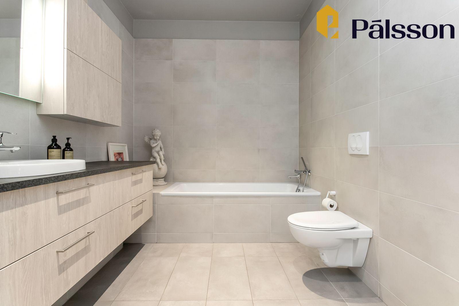 Baðherbergi: Baðherbergið er mjög vel útbúið og rúmgott, flísalagt í hólf og gólf. Bæði baðkar og sturta. Falleg innrétting, opnanlegur gluggi og handklæðaofn.