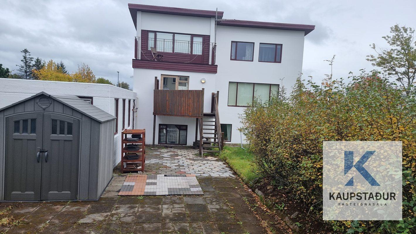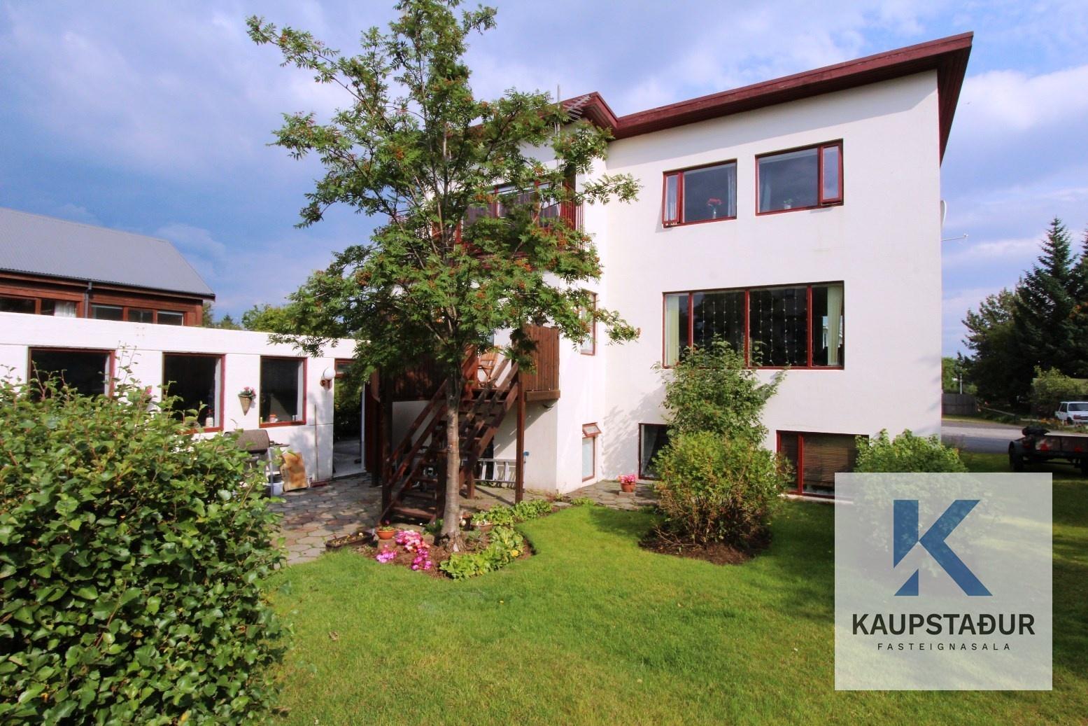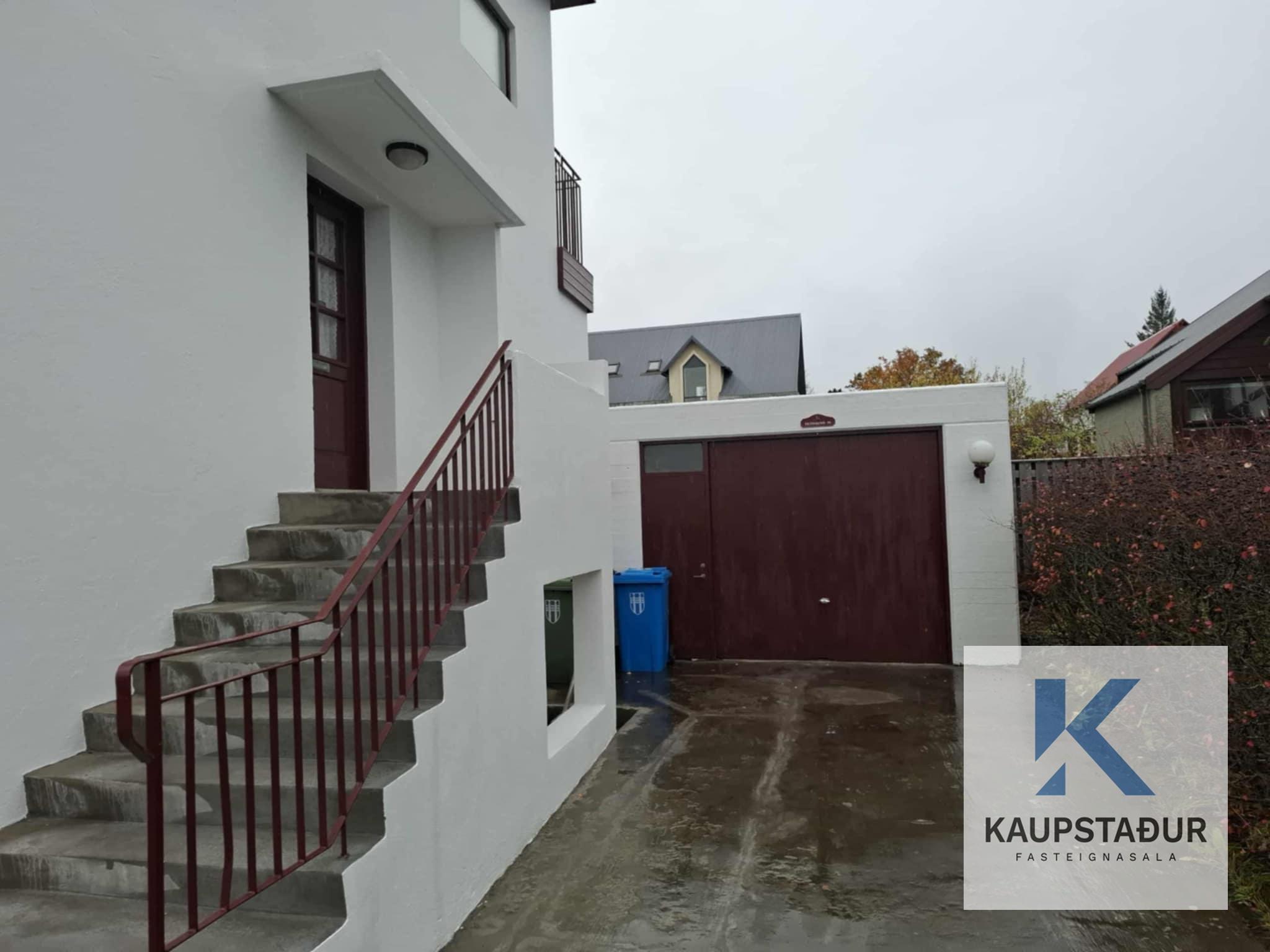Sjö herbergja íbúð í tvíbýli á þremur hæðum ásamt bílskúr. Smellið hér fyrir staðsetningu.