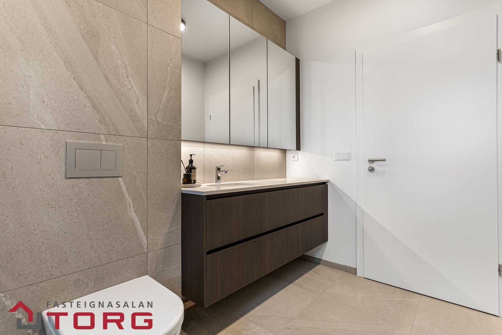 Innanhússfrágangur (3. hæð)Gólfefni: Baðherbergi og þvottahús flísalögð, annars afhent án gólfefna.