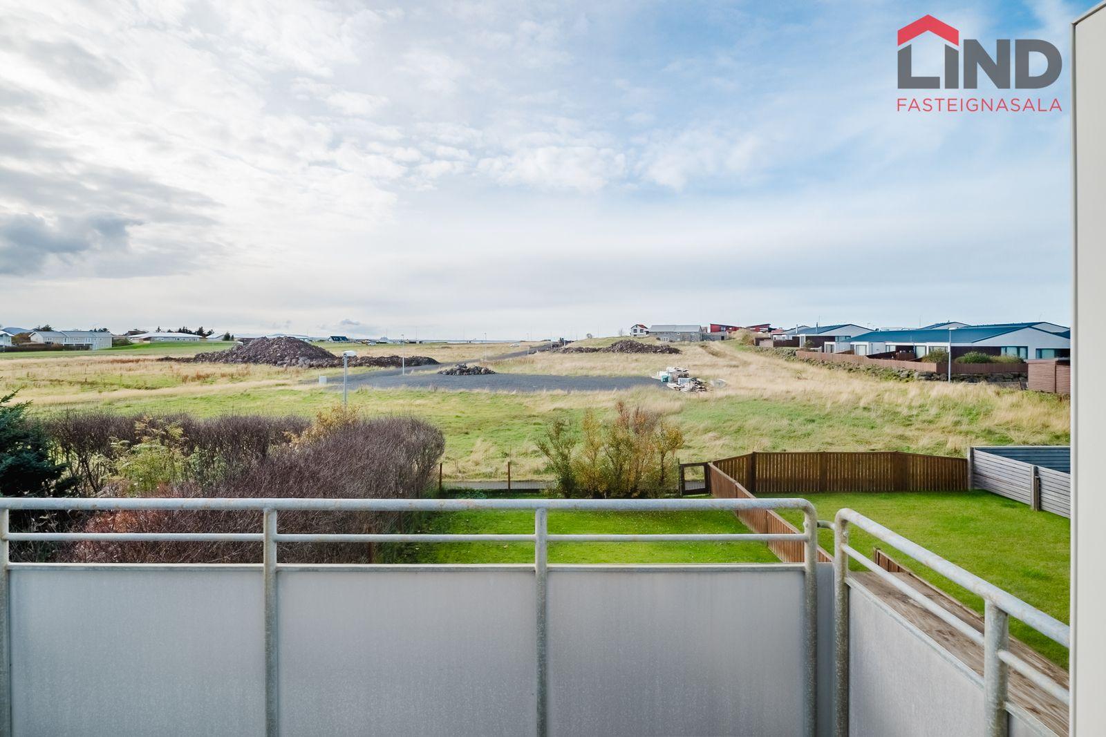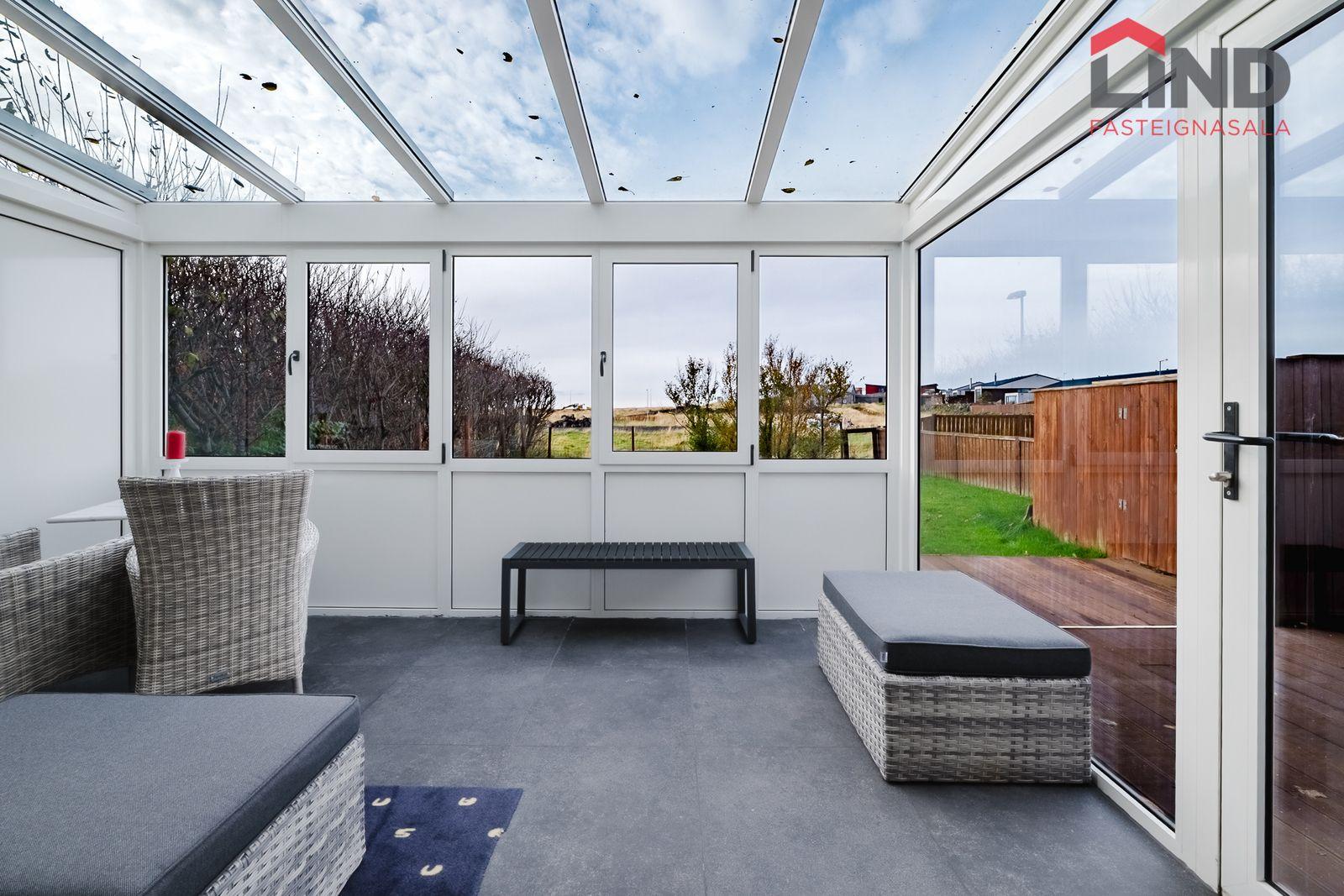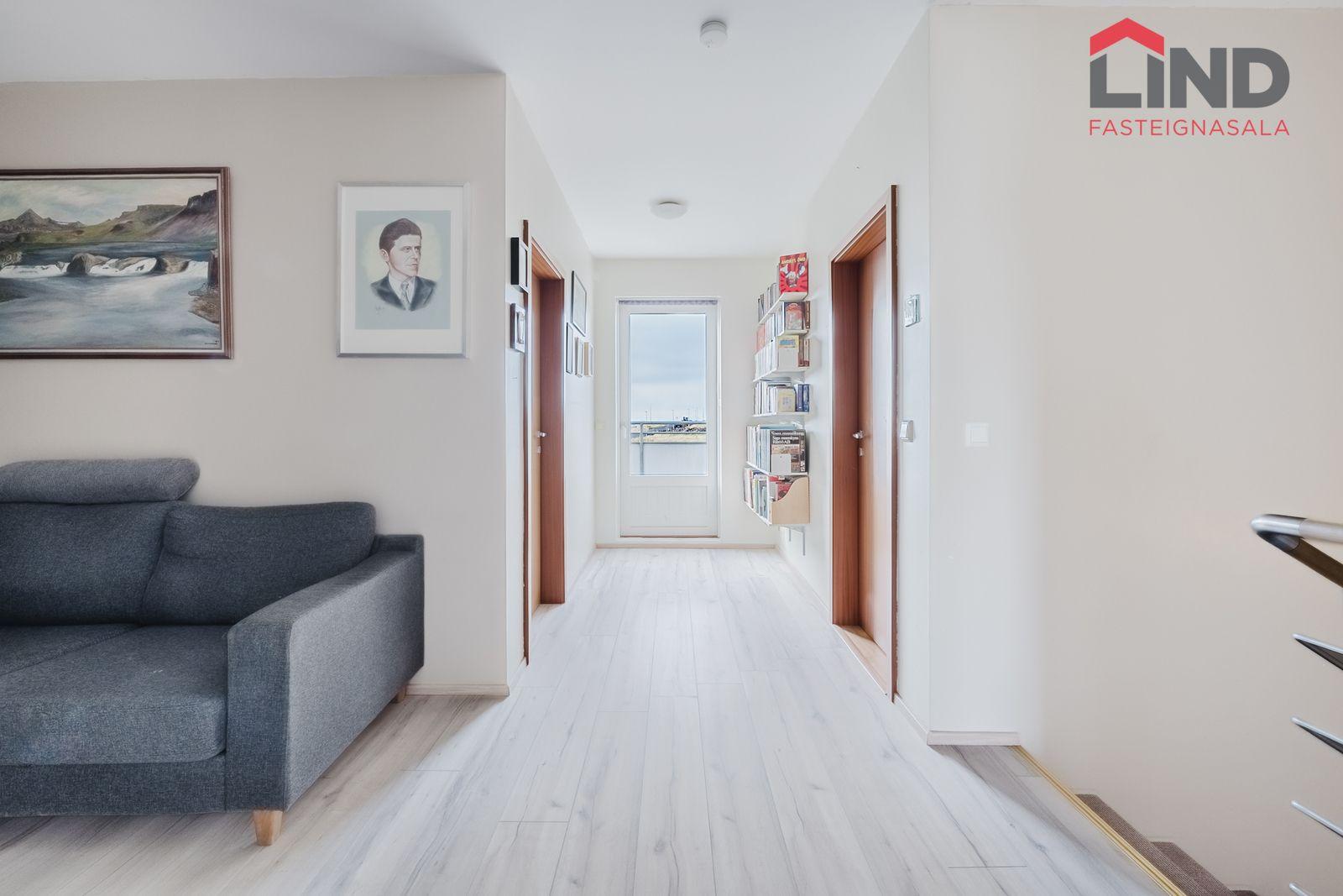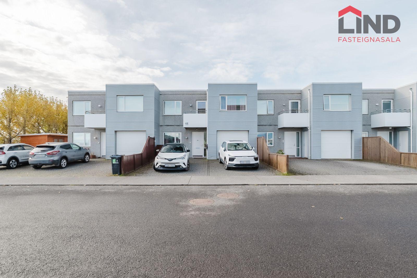 Atli á Lind fasteignasölu kynnir í einkasölu þetta fallega og bjarta 180,9 fm raðhús á tveimur hæðum með bílskúr. Í húsinu er virkilega fallegt útsýni af tvennum svölum sem snúa annars vegar í suður og hinsvegar í norður. Stór afgirtur garður með timburverönd sem snýr í suður ásamt notalegum sólskála með hita í gólfi. Bílskúr með hleðslustöð fyrir rafbíl.