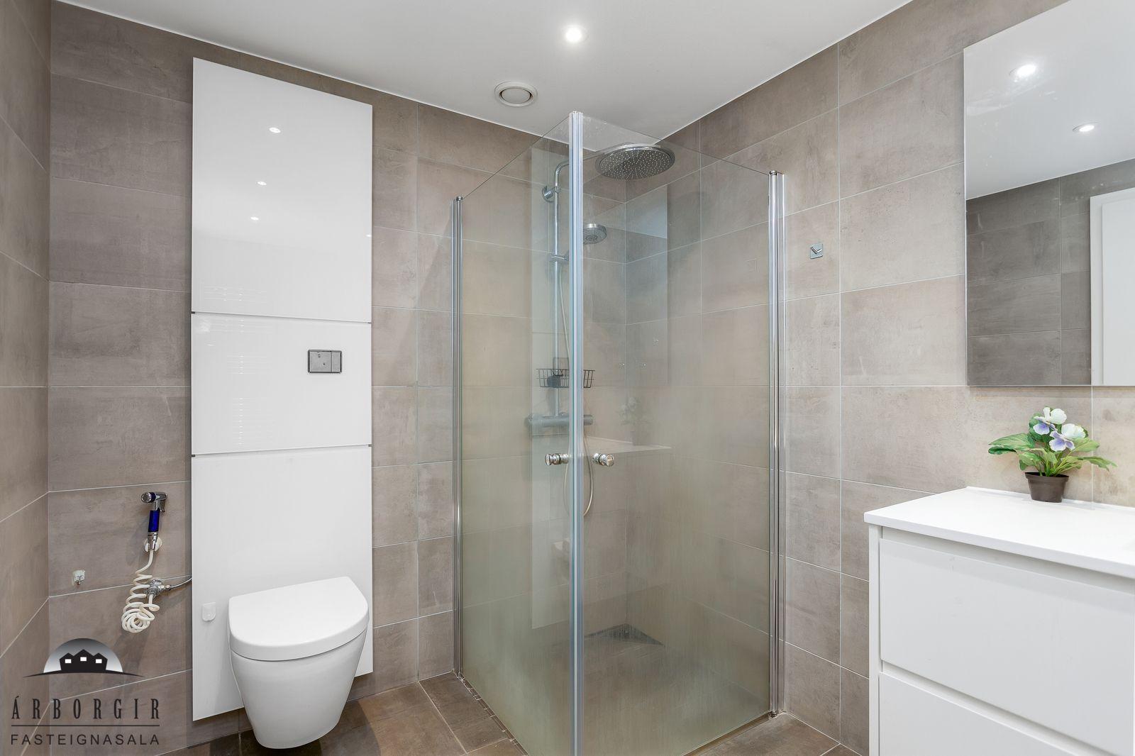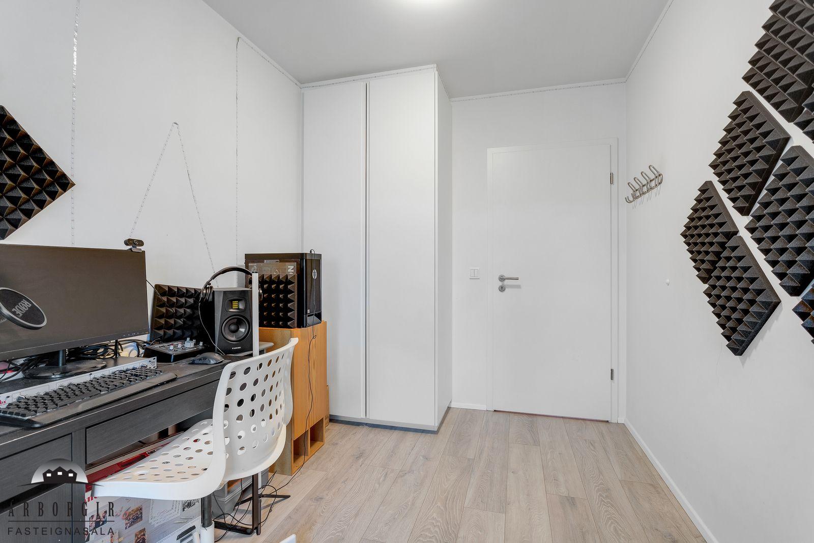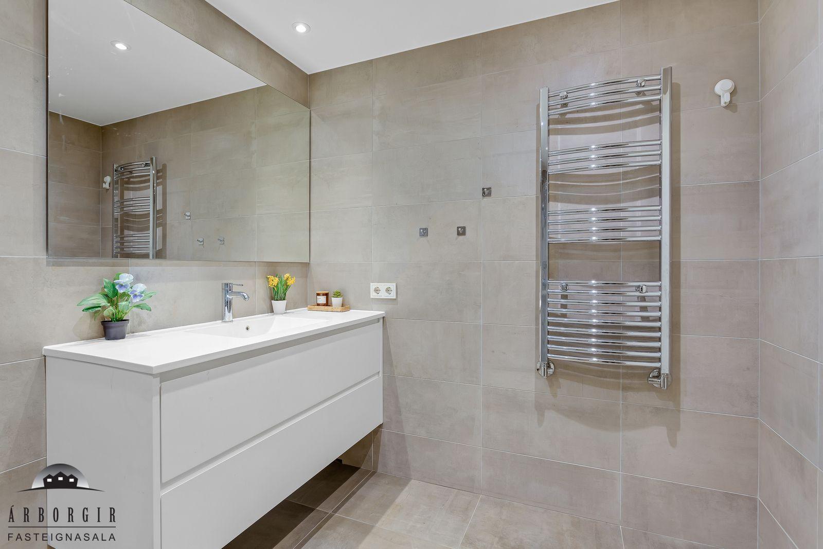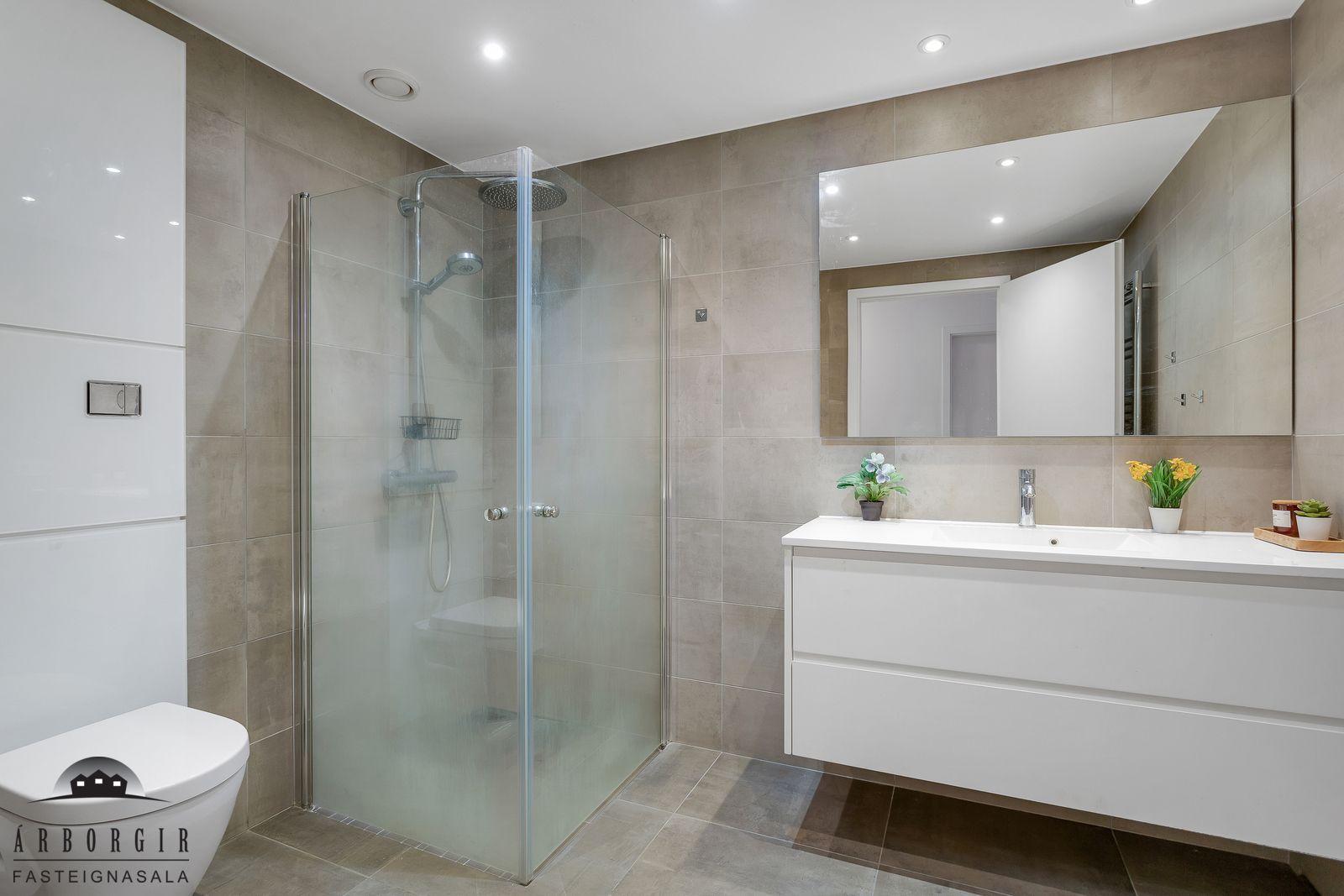 Nánari lýsing: Forstofa með fataskáp og parketer á gólfi. Fjögur svefnherbergi eru í eigninn og fataskápar í þeim öllum. Alrými er rúmgott og skiptist það í borðstofu og stofu, einnig er útgengt á rúmgóðar svalir með svalarlokun. Eldhúsið er með góðu ljósa innréttingu og er gott skápláss í henni. Einnig pláss fyrir eldhúskrók. Baðherbergi er flísalagt, upphengt salerni, rúmgóð sturta og fín innréttingu. Í þvottaherbergi er tengi fyrir þvottvél og þurrkara einnig skolvaskur. Sér geymsla í sameign hússins ásamt sameiginlegri hjóla og vagnageymslu.
