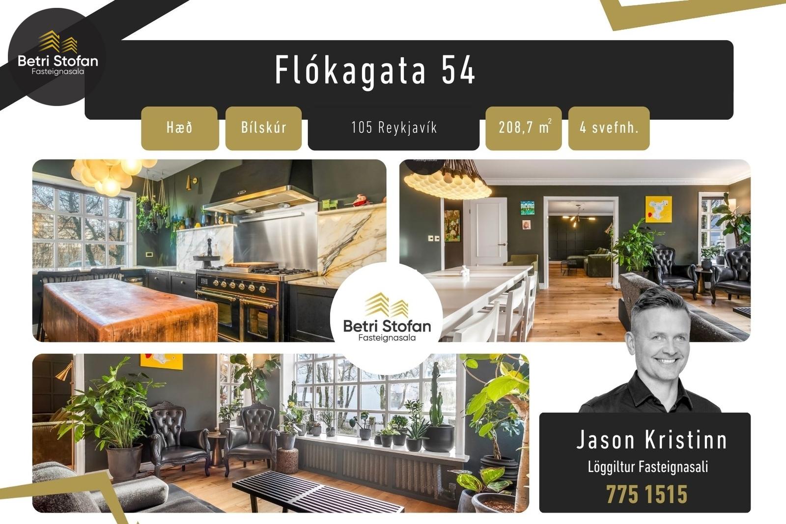 Betri stofan fasteignasala og Jason Kristinn fasteignasali í síma 775 1515 / jason@betristofan.is kynnir: Fallega hæð við Flókagötu í Reykjavík. Íbúðin er miðhæð í þríbýli með sér inngangi ásamt bílskúr á þessum vinsæla stað í Rvk.