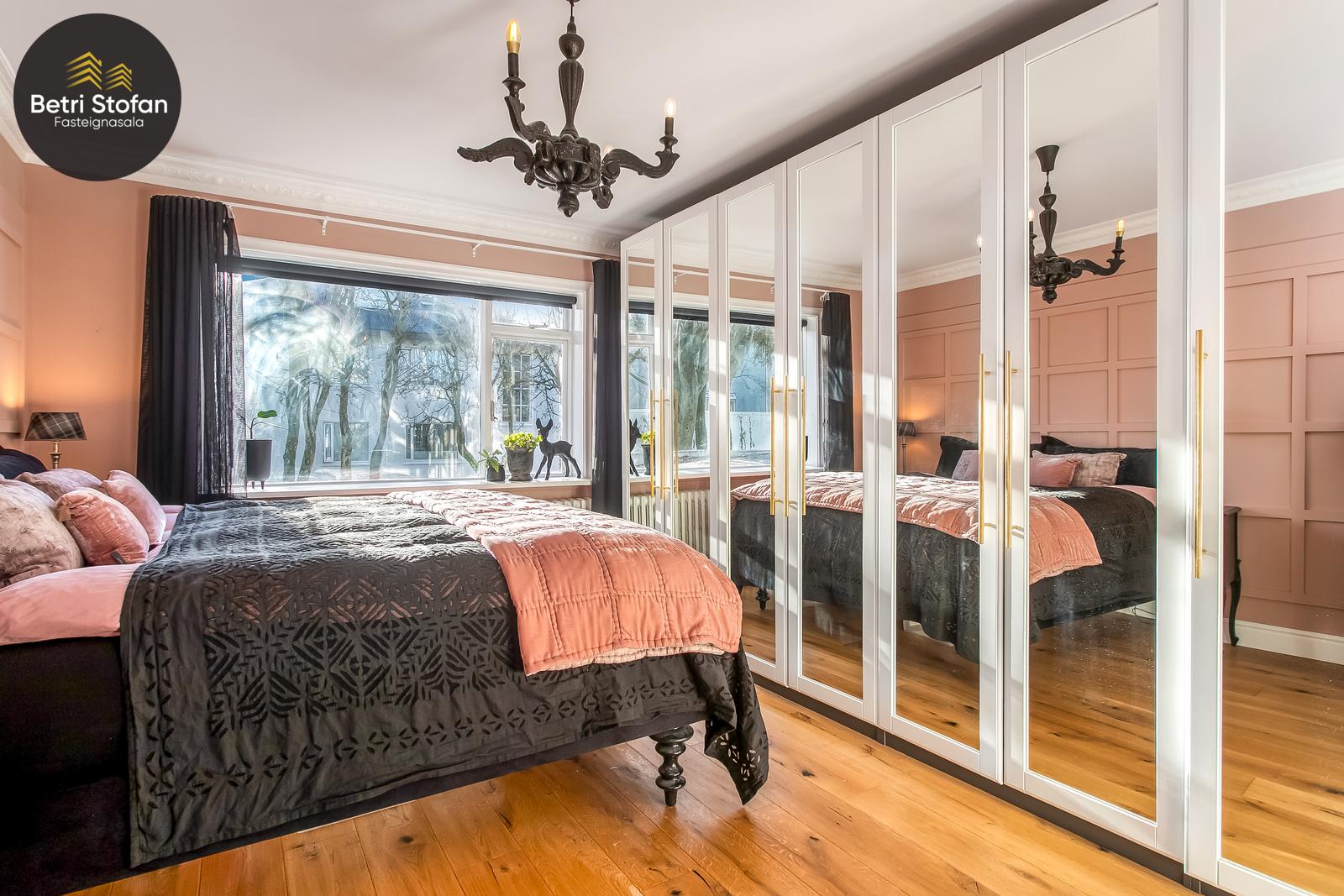 Nánari lýsing: Forstofa með parketi á gólfi. Hol/gangur með parketi á gólfi. Stofa og borðstofa með parketi á gólfi, útg. út á suð/vestur svalir. Eldhúsið er með parketi, glæsilegri innréttingu og gaseldavél, marmari er á borðplötum og veggjum. Þrjú herbergi parketi á gólfi, skápar í tveim, útg. út suð/austur svalir úr einu herberginu. Baðherbergið er endurnýjað með flísum á gólfi og vegg, skápur, baðkar, Burlington tæki eru á baðherbergi. Innangengt úr íbúðinni í sameign og niður í kjallara/jarðhæð, þar er tvær geymslur/herbergi sem er búið að opna á milli. Sameignlegt þvottahús, snyrtilegt, flísar á gólfi.