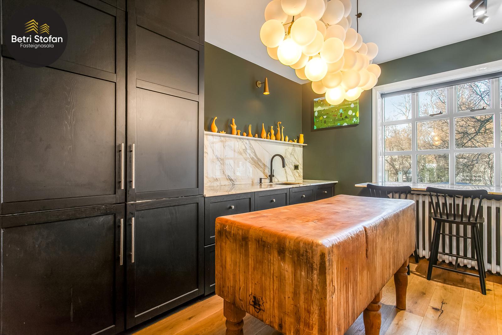 Íbúðin er glæsilega endurnýjuð og ýmsir möguleikar varðandi notkun á bílskúrsrýminu.