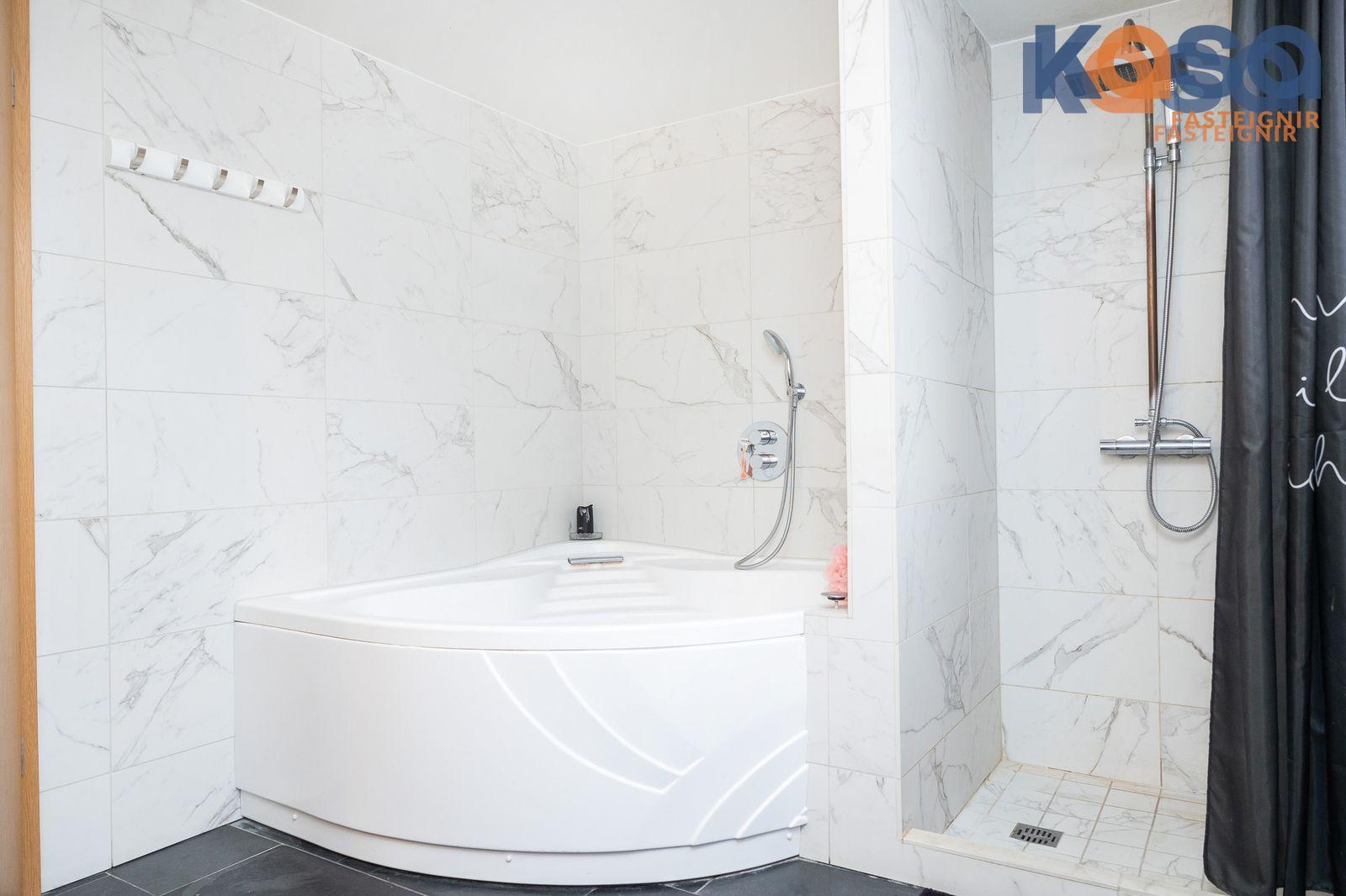Baðherbergi: Rúmgott baðherbergi með hornbaðkari og sturtu. Góð innrétting með borðvaski. Flísalagt í hólf og gólf. Vegghengt salerni.