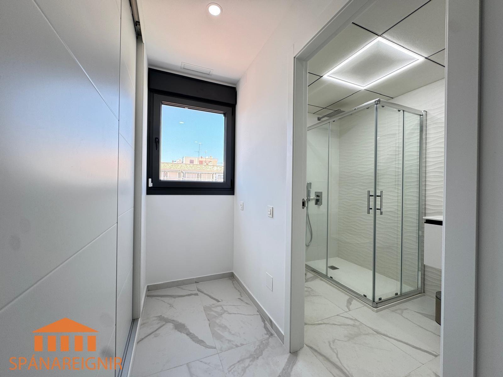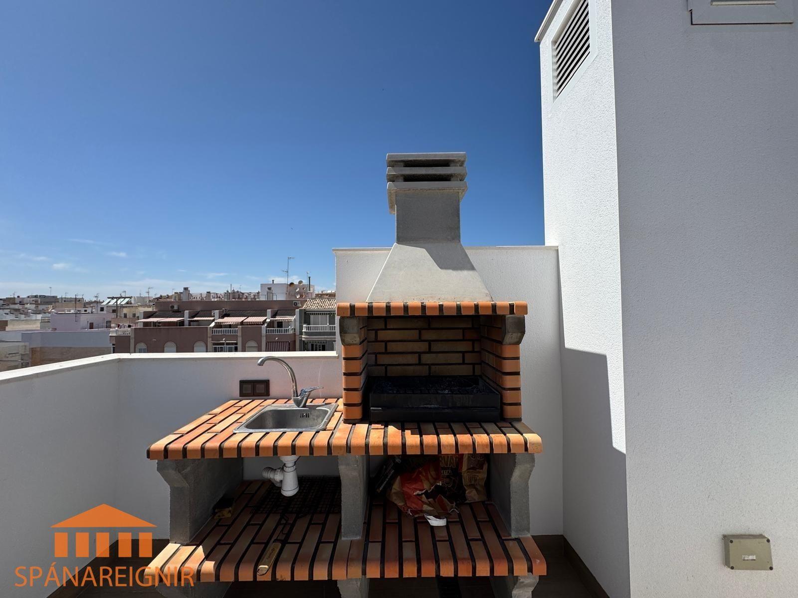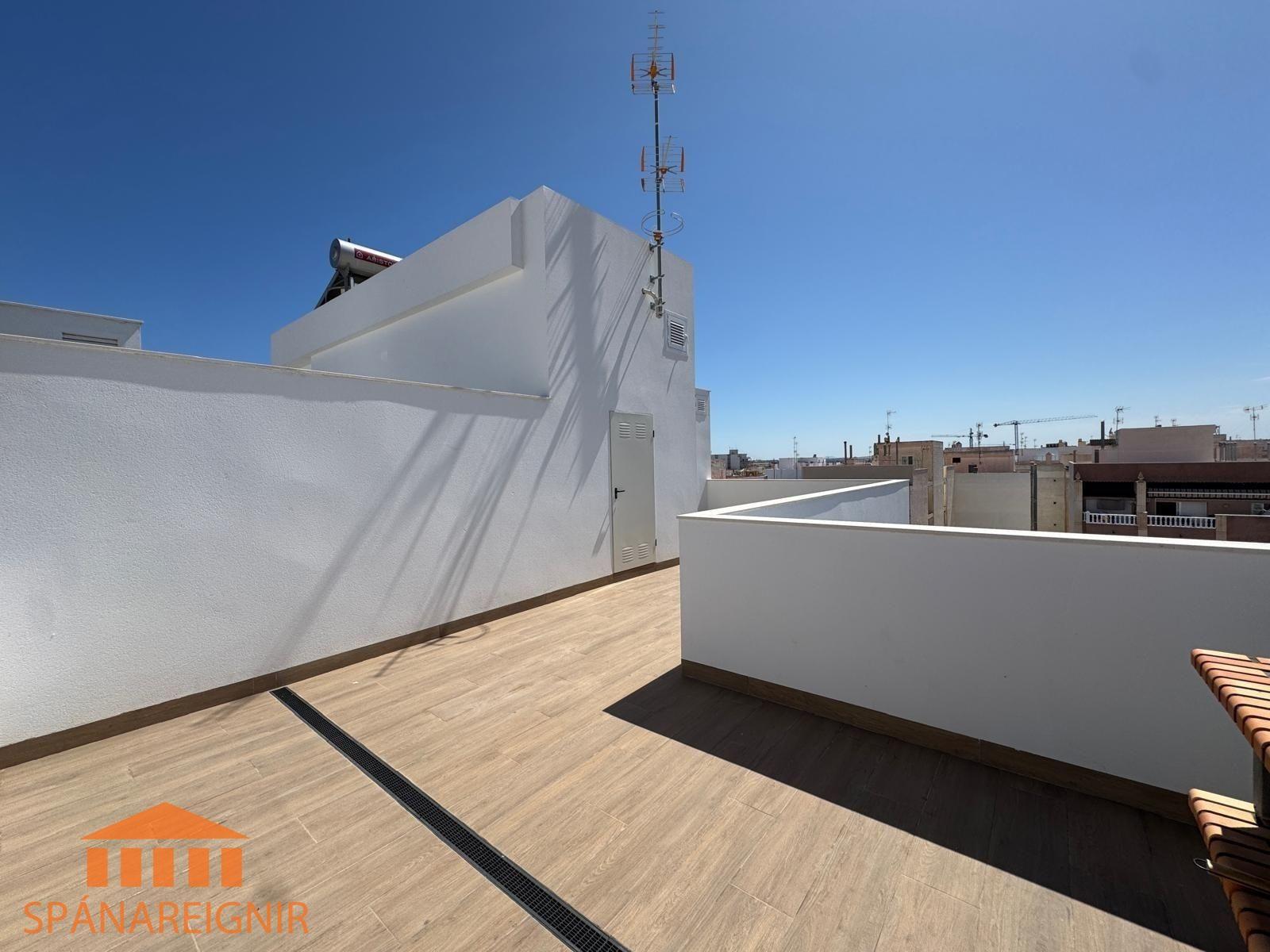 Nýleg 3ja herb. íbúð á frábærum stað í miðbæ Torrevieja. Vönduð íbúð með glæsilegri sameign, á þaki húsins er að finna sameiginlega sólbaðsaðstöðu ásamt 35 fm sérþaksvölum sem fylgja íbúðinni. Í sameign er sundlaug, vel útbúin líkamsræktaraðstaða ásamt góðri sánu. Íbúðin er sérlega vel staðsett þar sem strönd og mannlíf eru í göngufæri. Einstakt tækifæri til að eignast góða íbúð á frábæru verði á besta stað í miðborg Torrevieja.