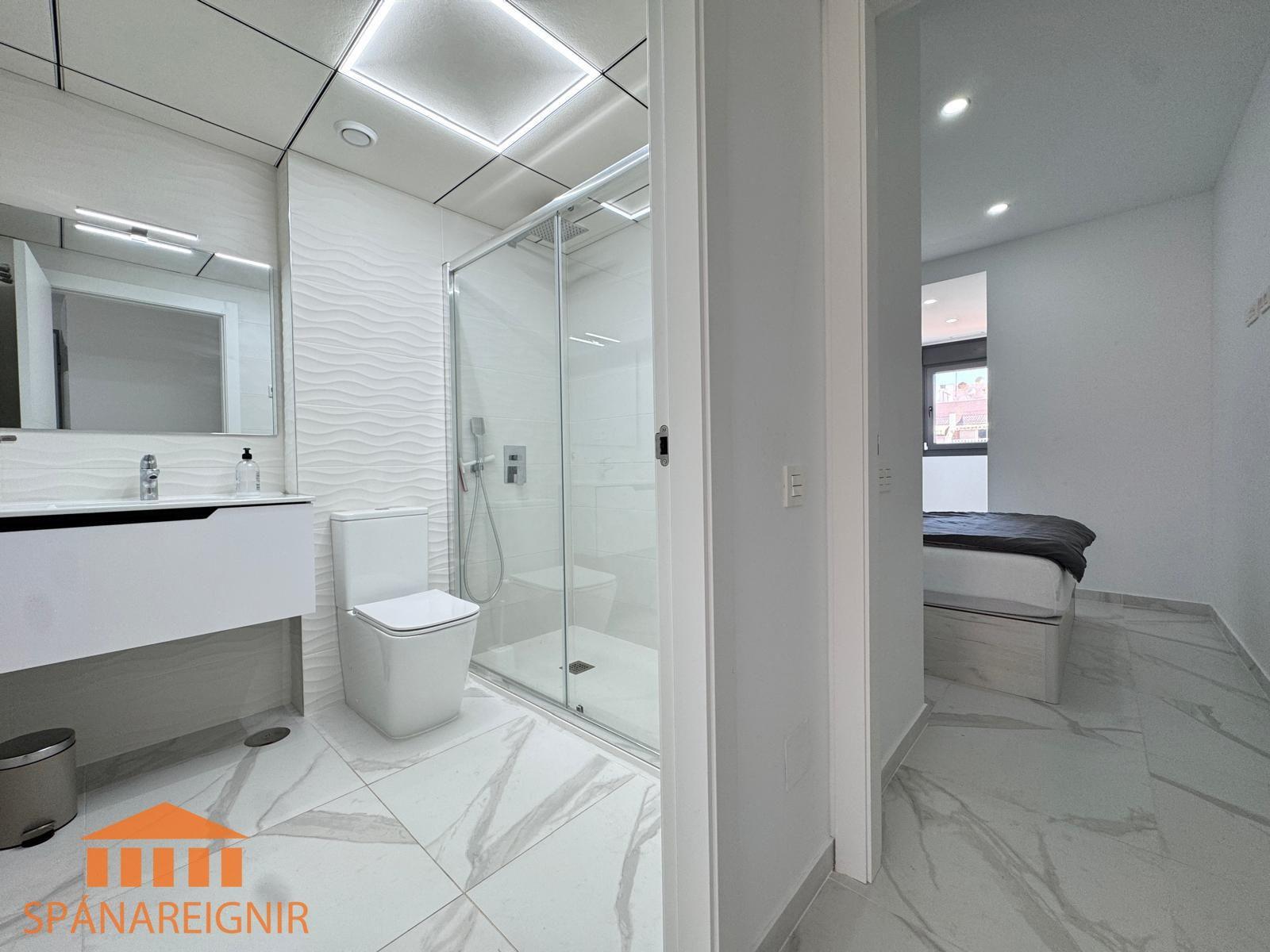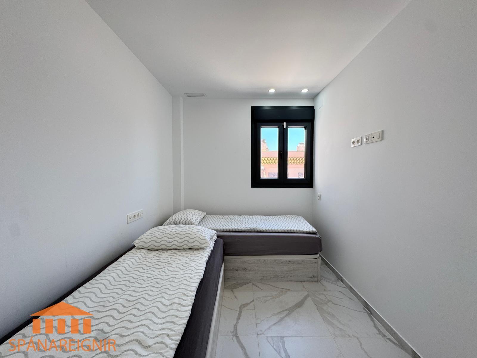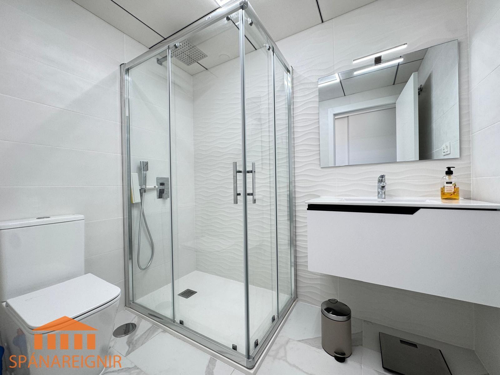 Nýleg 3ja herb. íbúð á frábærum stað í miðbæ Torrevieja. Vönduð íbúð með glæsilegri sameign, á þaki húsins er að finna sameiginlega sólbaðsaðstöðu ásamt 35 fm sérþaksvölum sem fylgja íbúðinni. Í sameign er sundlaug, vel útbúin líkamsræktaraðstaða ásamt góðri sánu. Íbúðin er sérlega vel staðsett þar sem strönd og mannlíf eru í göngufæri. Einstakt tækifæri til að eignast góða íbúð á frábæru verði á besta stað í miðborg Torrevieja.