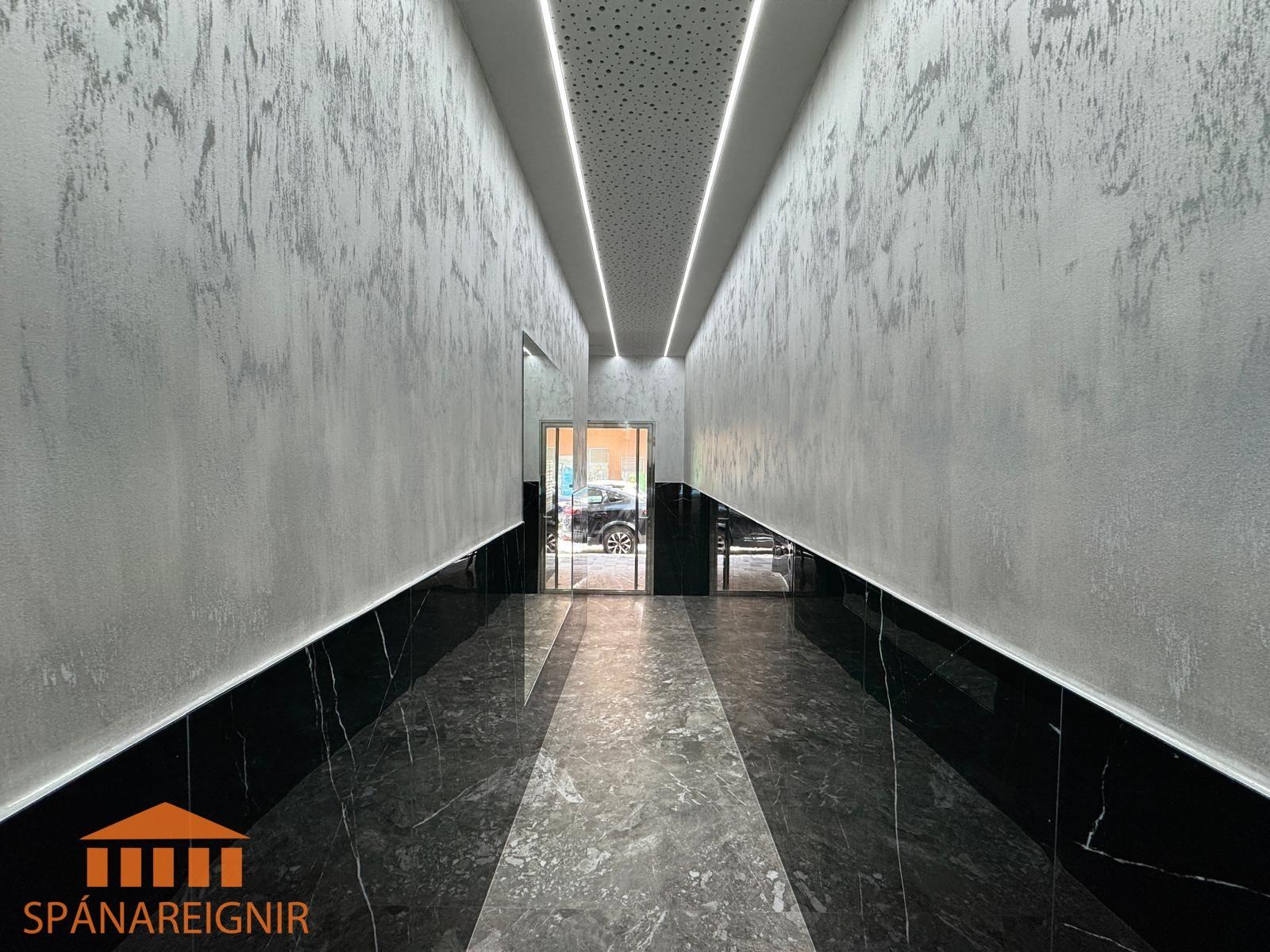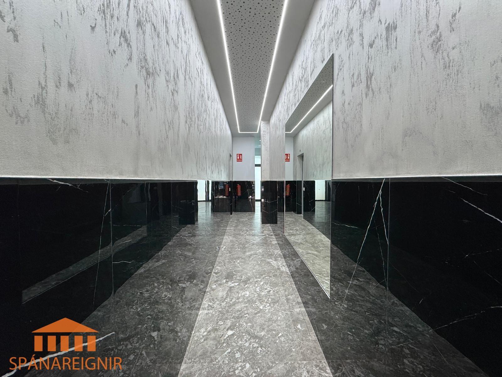 Nánari lýsing:Gengið er inn í forstofu með skápum, þar er einnig baðherbergi með sturtu. Tvö svefnherbergi með fataskápum og eitt þeirra með sér baðherbergi með sturtu. Bæði baðherbergin eru með hita í gólfi. Vel skipulagt alrými með opnu eldhúsi, borðstofu og stofu og útgengi út á svalir. Svalirnar eru 12 fm og rúmast vel, með frábæru útsýni. Eigninni fylgja 35 fm sér þaksvalir með stórkostlegu útsýni til sjávar og yfir miðborgina. Lyftan gengur alla leið upp á þak. Sturta og grillaðstaða á þaksvölum.