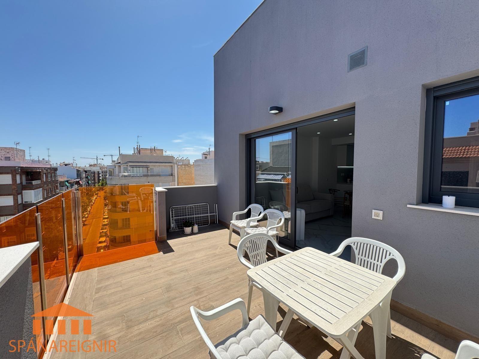 NÝLEG PENTHOUSE ÍBÚÐ Í HJARTA TORREVIEJA* *SVALIR OG ÞAKSVALIR MEÐ SJÁVARÚTSÝNI *200m FRÁ STRÖND* *LÍKAMSRÆKTARAÐSTAÐA, SAUNA OG SUNDLAUG* *LYFTA SEM GENGUR ALLA LEIÐ UPP Á ÞAKSVALIR*