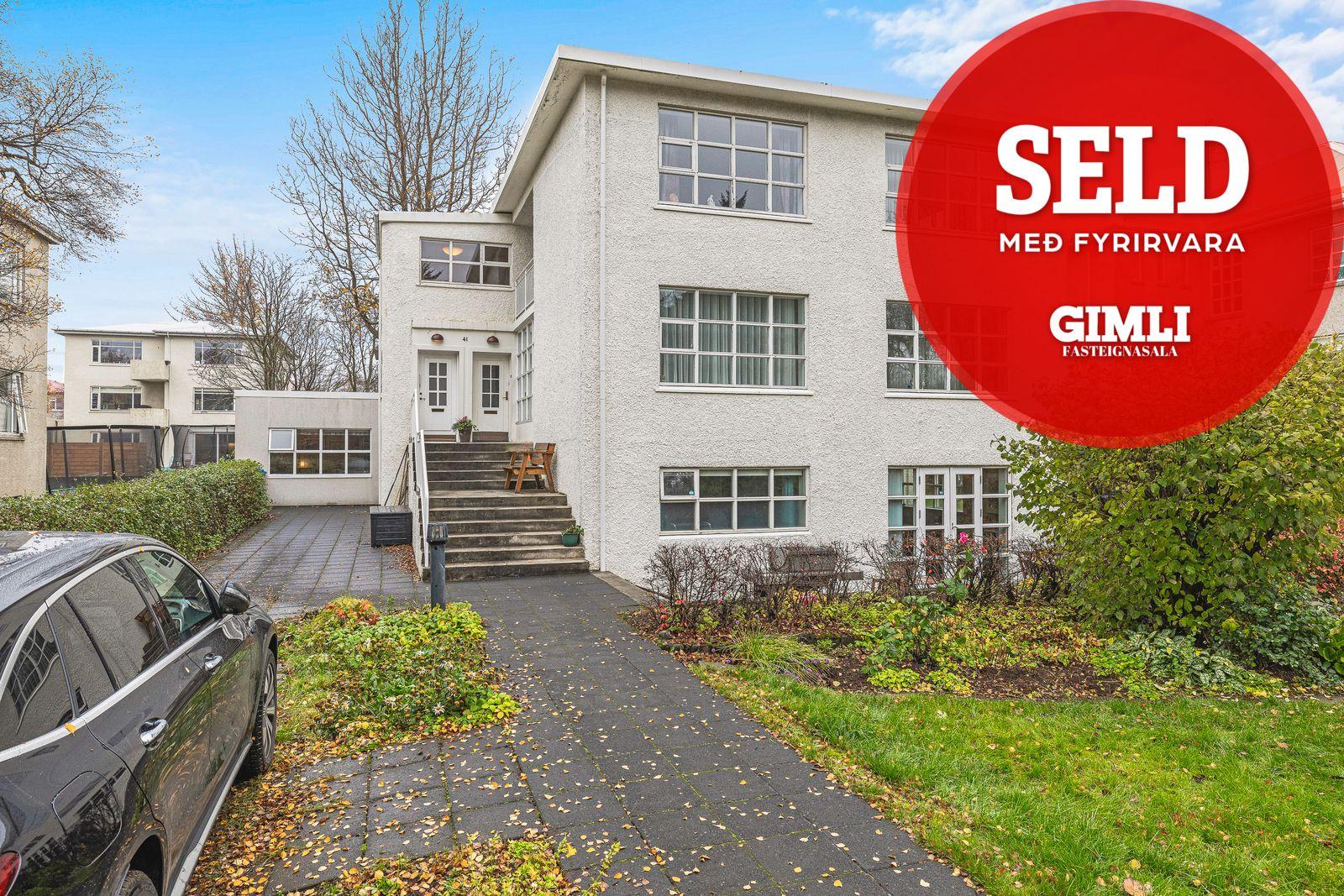 Gimli fasteignasala og Lilja Hrafnberg kynna: Falleg og björt efri sérhæð ásamt aukaíbúð í sérlega glæsilegu húsi með franskri gluggasetningu á þessum eftirsótta stað á móts við Kjarvalsstaði. Stutt er í skóla, þjónustu og í miðborgina. Eignin er í heildina skráð 161,9 fm og skiptist í forstofu með stiga upp á 2.hæð, arinstofu, tvær samliggjandi stofur, eldhús, tvö svefnherbergi, tvennar svalir, baðherbergi, geymslu, risloft og 36,6 fm aukaíbúð í vinnustofu/bílskúr. Eigninni fylgir stæði.
