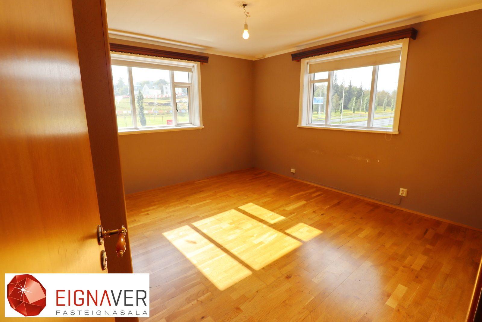 Glerárgata 18, efri hæð Björt og góð fjögurra herbergja efri hæð ásamt auka stúdíóíbúð í geymsluskúr miðsvæðis á Akureyri. Íbúðin er 107,2 fm auk stúdíóíbúðarinnar sem er 21,1 fm. Samtals er eignin 135,9 fm.