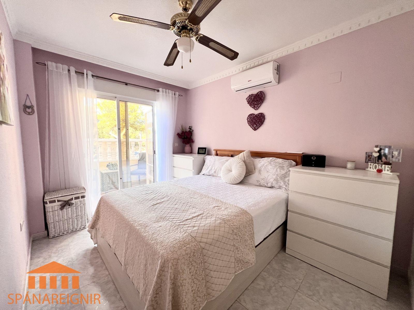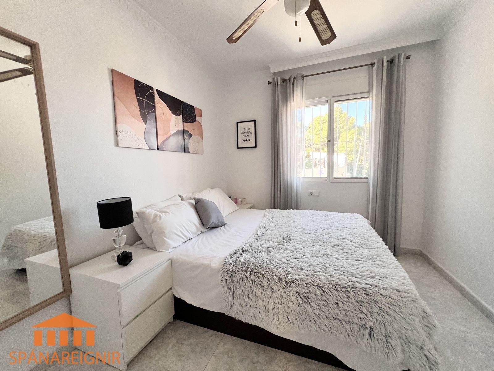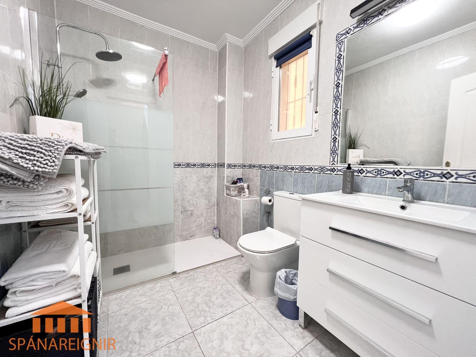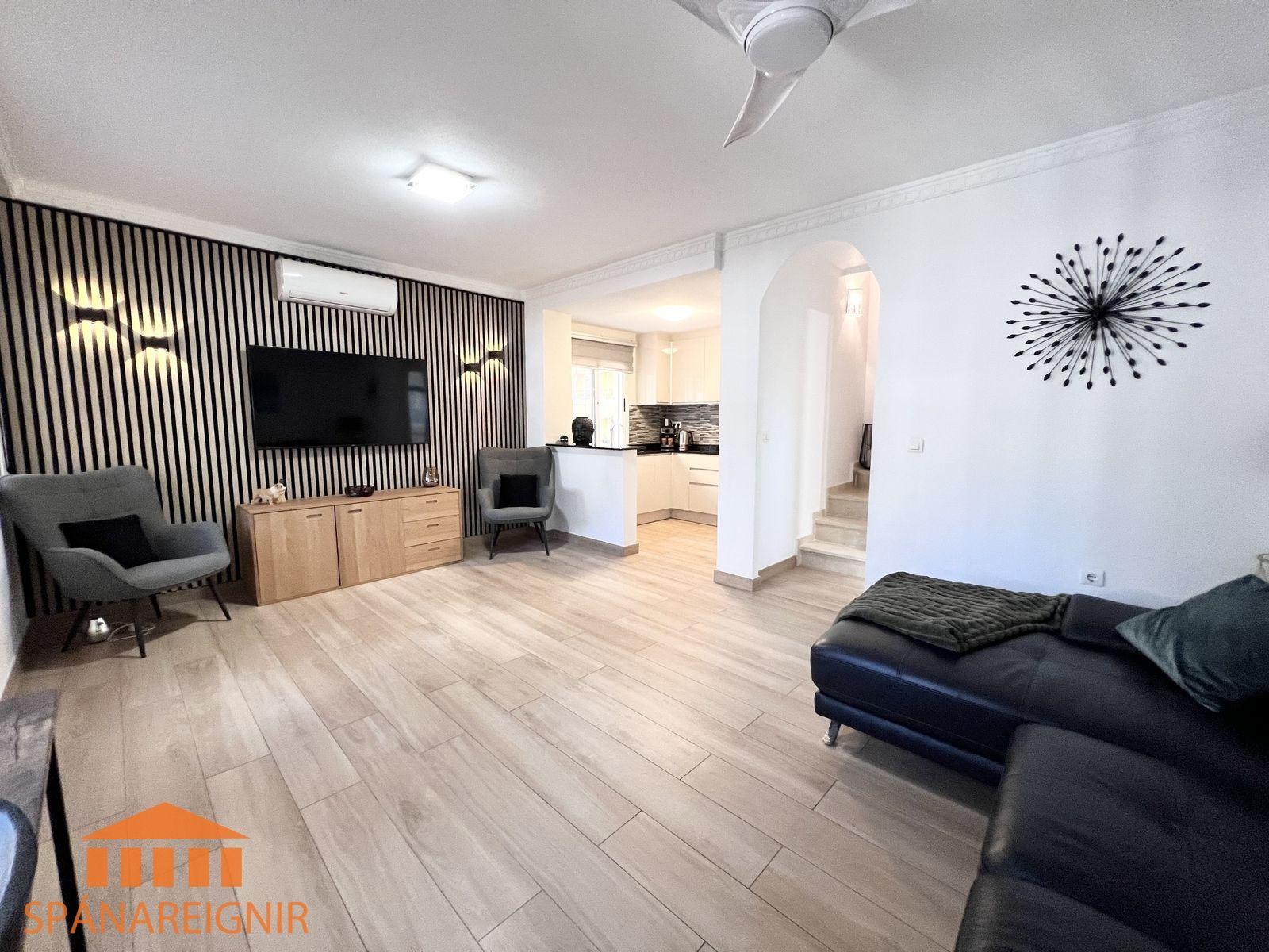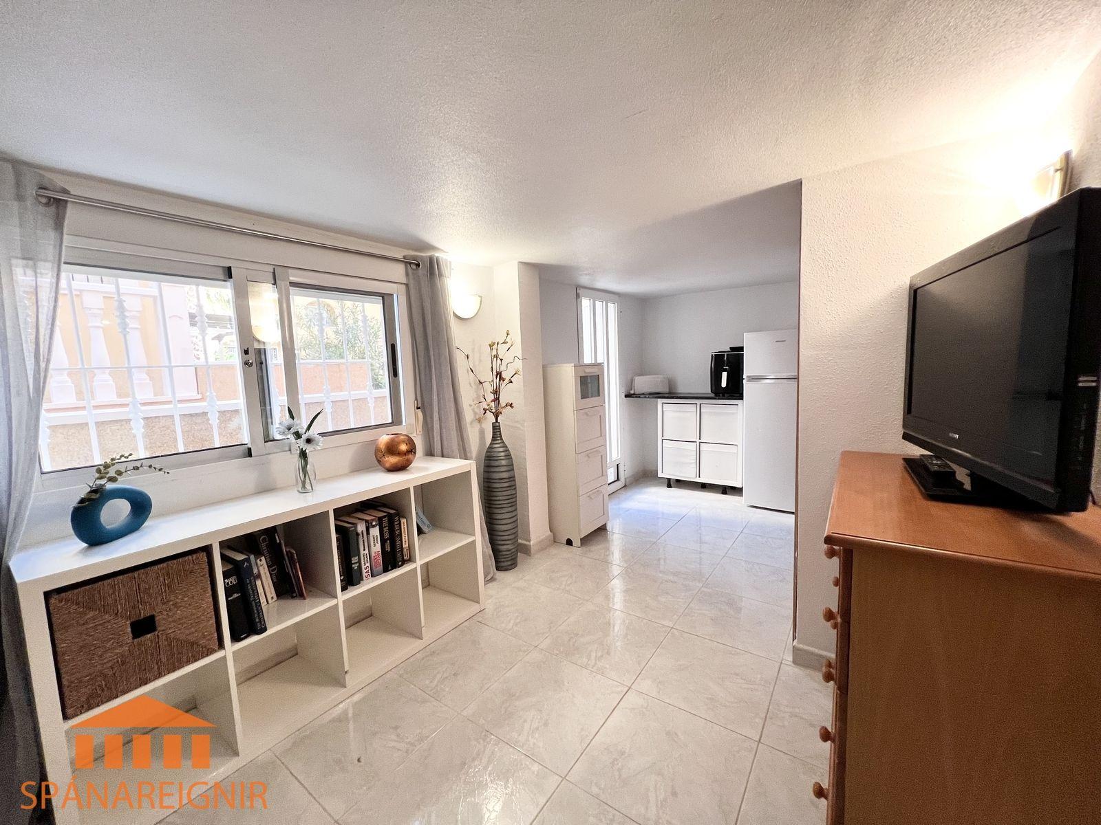 SPÁNAREIGNIR KYNNIR: *4RA HERBERGJA HÚS MEÐ STUDIO ÍBÚÐ* *3 SVEFNH. OG 3 BAÐH.* *ÞAKSVALIR MEÐ SJÁVARÚTSÝNI OG GARÐUR* *SAMEIGINLEG SUNDLAUG NOKKRUM SKREFUM FRÁ* *FRÁBÆR STAÐSETNING Í GÖNGUFÆRI VIÐ VERSLANIR OG VEITINGASTAÐI* *STUTT Í GOLF OG STRÖND*Mikið endurnýjað 4ra herbergja hús á þessum vinsæla stað í Villamartin, í göngufæri við alla helstu þjónustu. Á fyrstu hæð er endurnýjað og rúmgott eldhús, opið við stofu. Stofan er rúmgóð og á hæðinni er einnig gestasnyrting með glugga. Gengið er upp á efri hæð og þar eru tvö rúmgóð svefnherbergi með skápum, og baðherbergi með sturtu og glugga. Annað svefnherbergið er einnig með útgengi út á svalir. Eigninni fylgja þaksvalir þar sem er hægt að njóta sólarinnar og útsýnis til sjávar.