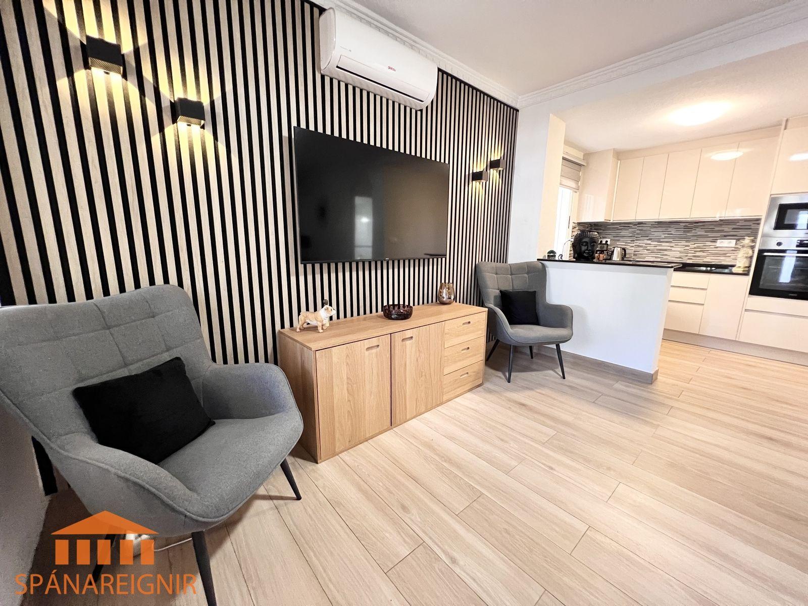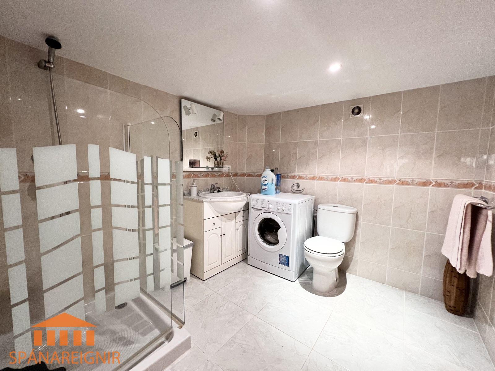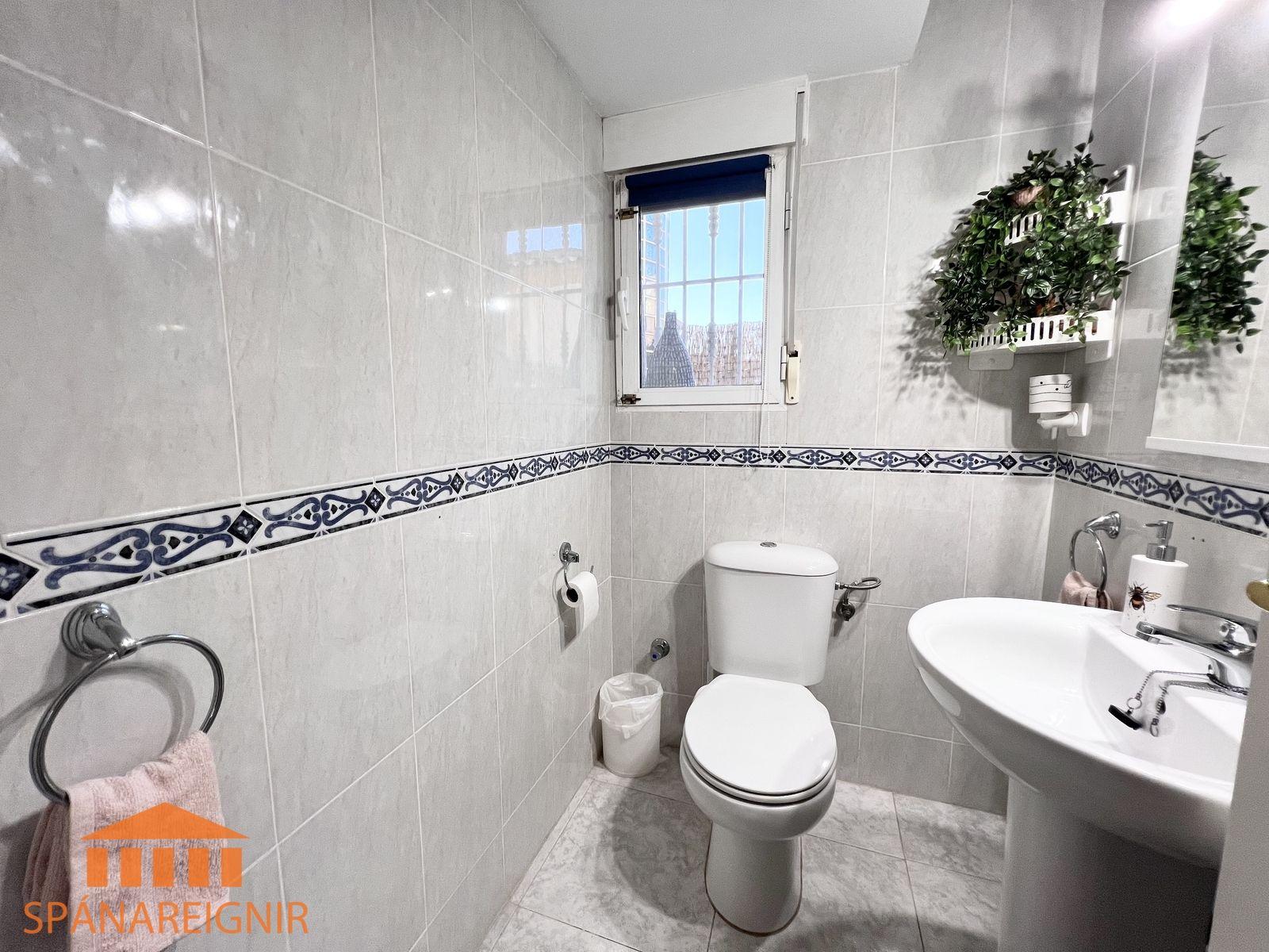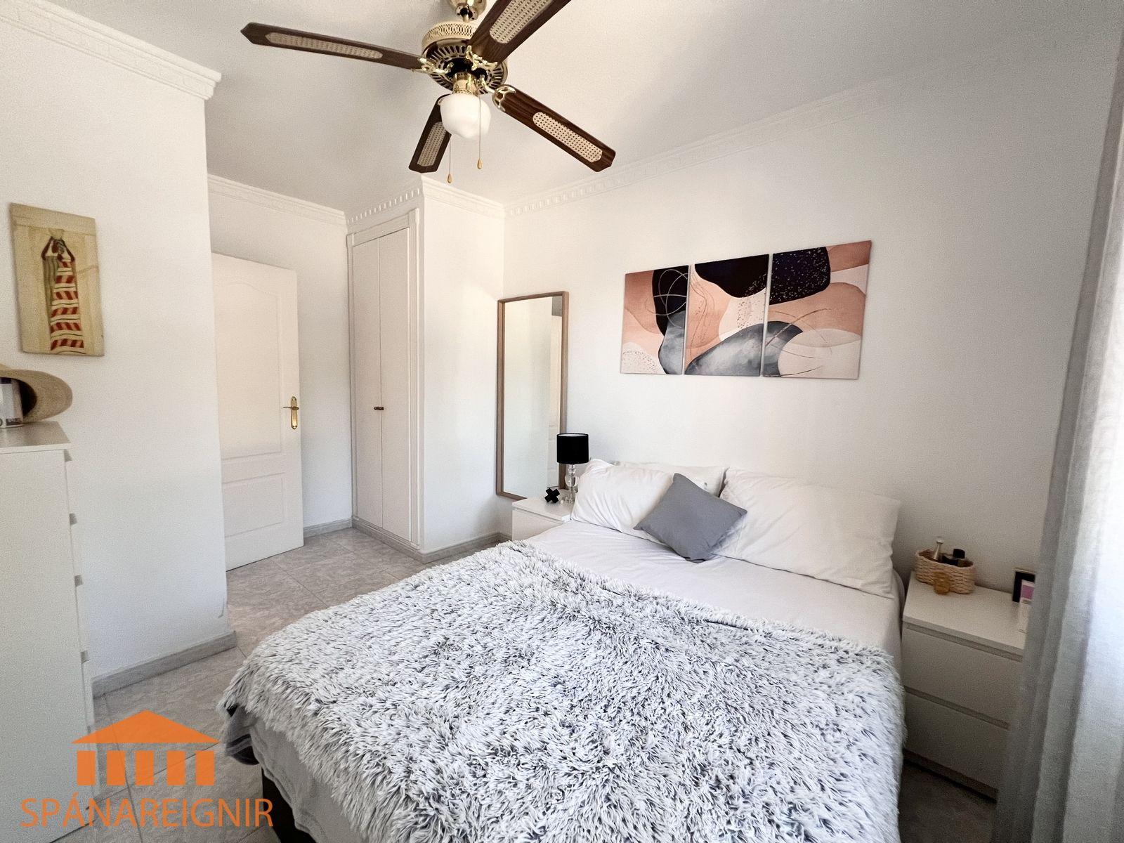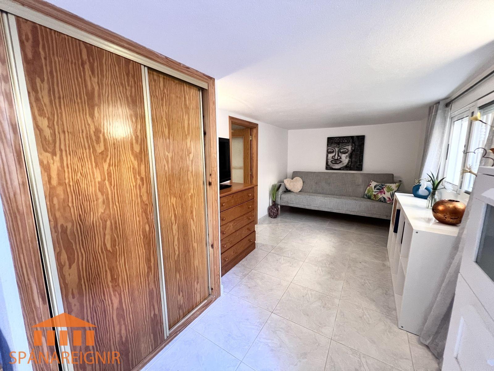 SPÁNAREIGNIR KYNNIR: *4RA HERBERGJA HÚS MEÐ STUDIO ÍBÚÐ* *3 SVEFNH. OG 3 BAÐH.* *ÞAKSVALIR MEÐ SJÁVARÚTSÝNI OG GARÐUR* *SAMEIGINLEG SUNDLAUG NOKKRUM SKREFUM FRÁ* *FRÁBÆR STAÐSETNING Í GÖNGUFÆRI VIÐ VERSLANIR OG VEITINGASTAÐI* *STUTT Í GOLF OG STRÖND*Mikið endurnýjað 4ra herbergja hús á þessum vinsæla stað í Villamartin, í göngufæri við alla helstu þjónustu. Á fyrstu hæð er endurnýjað og rúmgott eldhús, opið við stofu. Stofan er rúmgóð og á hæðinni er einnig gestasnyrting með glugga. Gengið er upp á efri hæð og þar eru tvö rúmgóð svefnherbergi með skápum, og baðherbergi með sturtu og glugga. Annað svefnherbergið er einnig með útgengi út á svalir. Eigninni fylgja þaksvalir þar sem er hægt að njóta sólarinnar og útsýnis til sjávar.