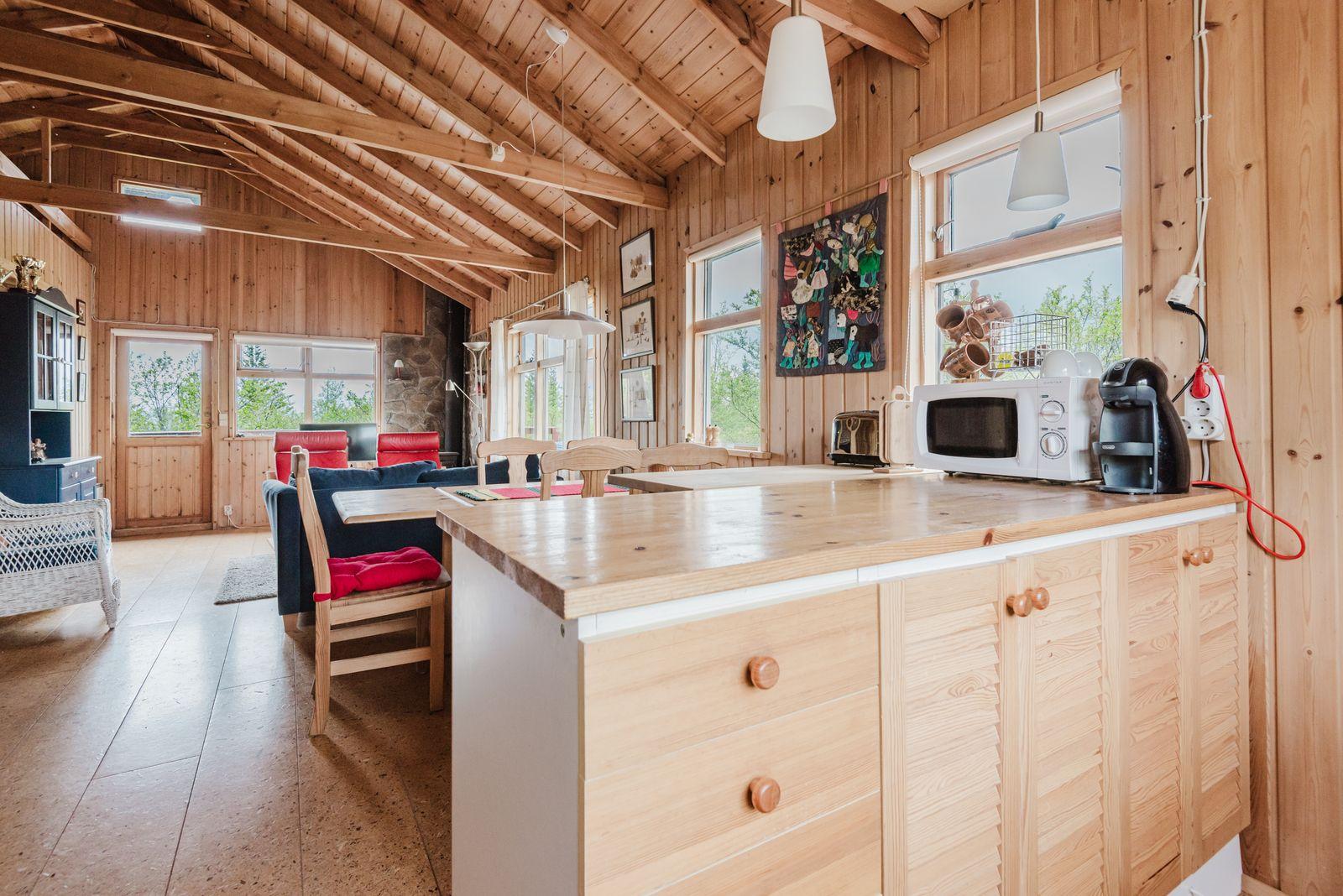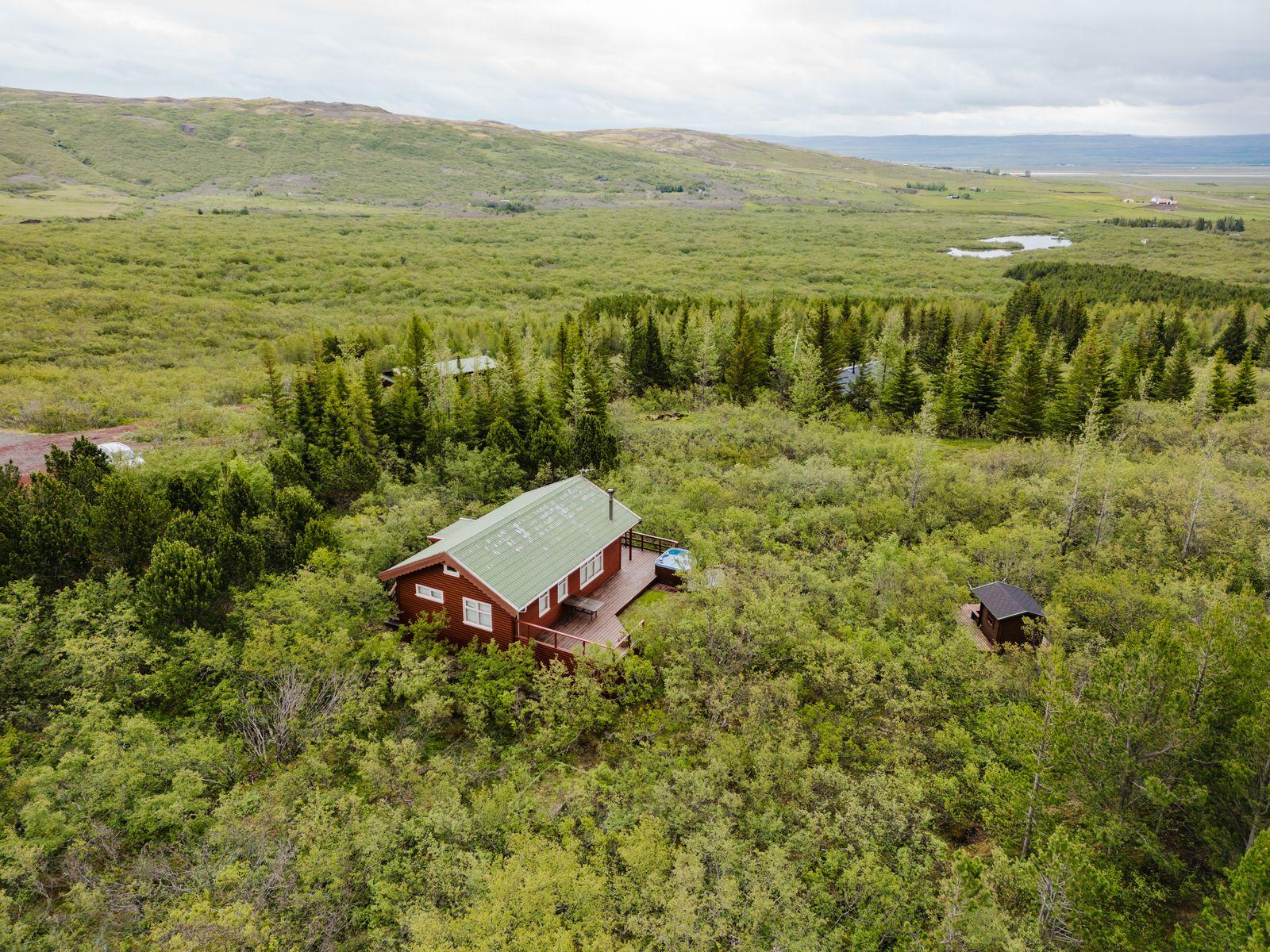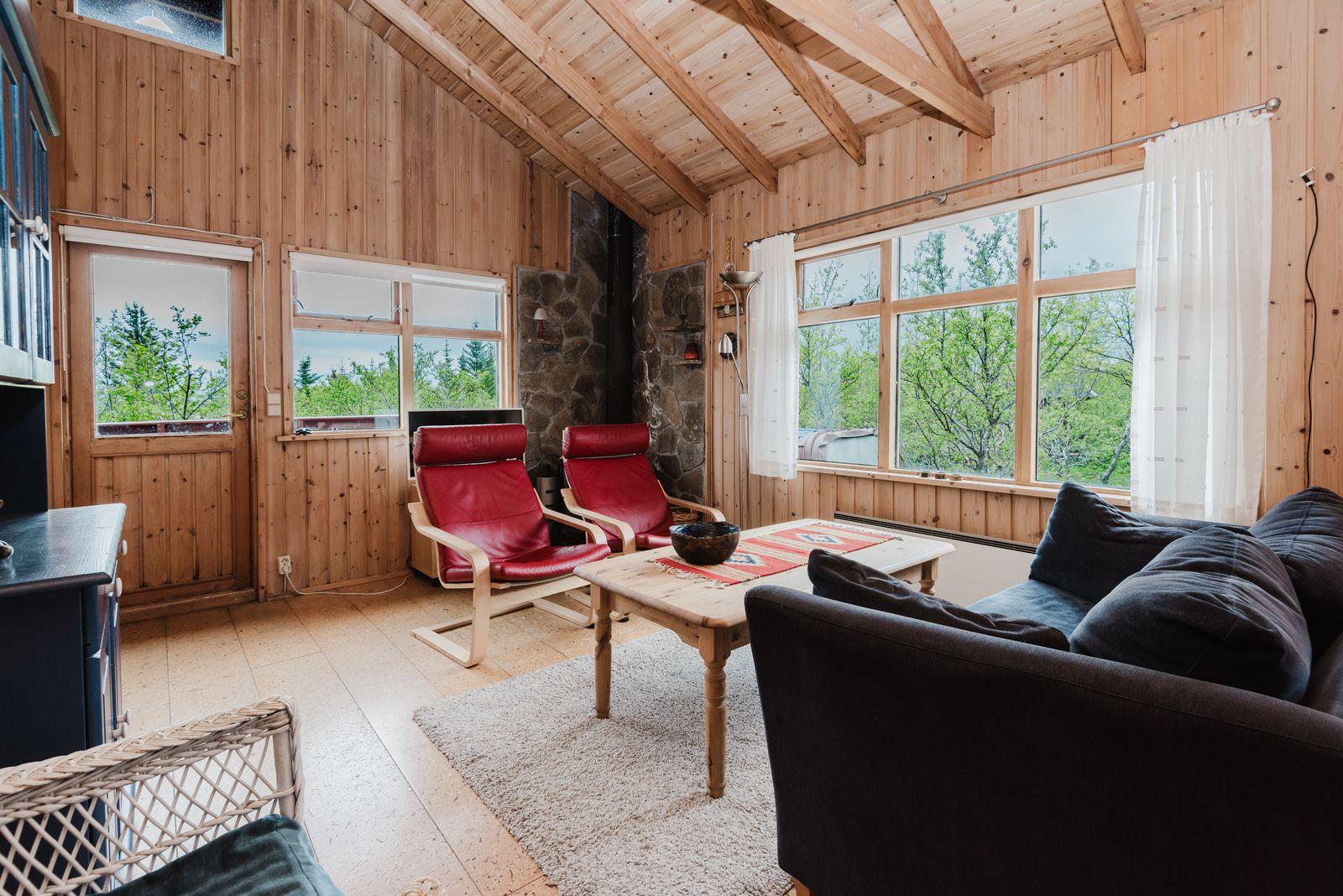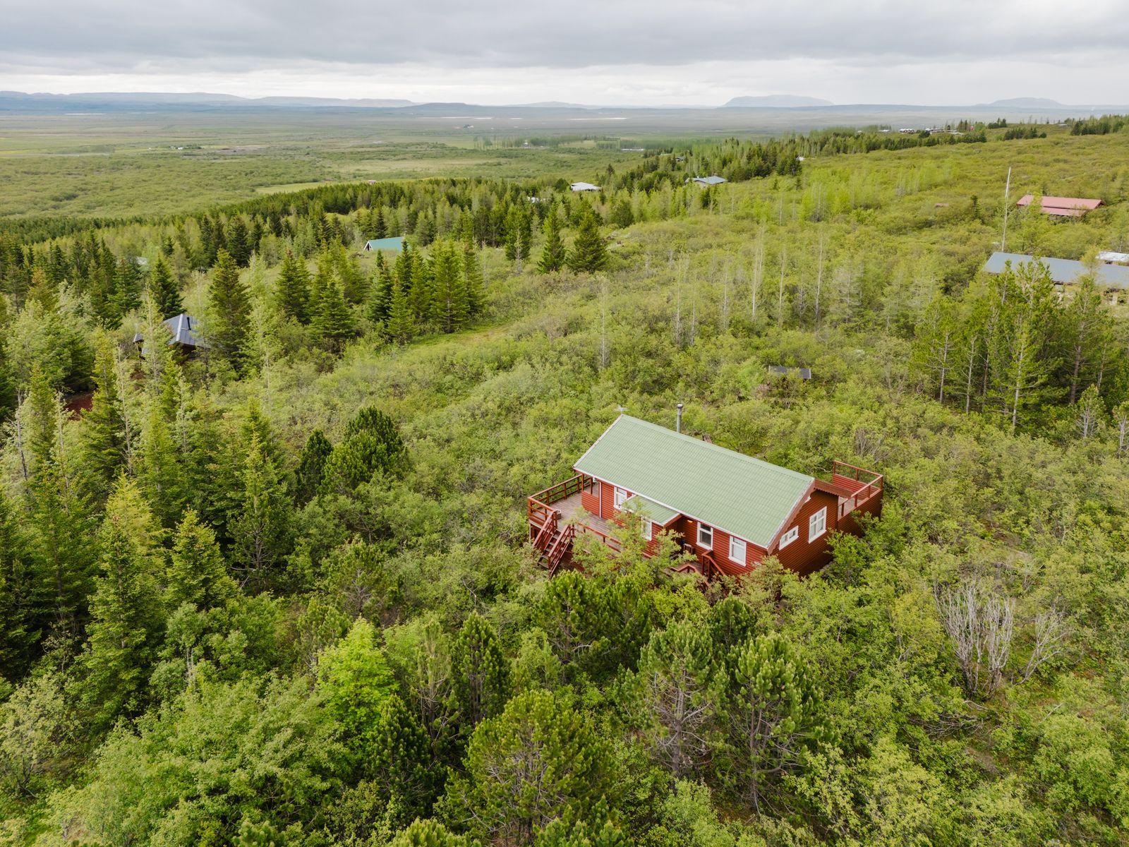 Um ræðir fallegt timburhús 57m2 að grunnfleti byggt 1987. Húsið er klætt með láréttri vatnsklæðningu- vel málað. Góðir pallar umhverfis húsið og heitur pottur ( rafmagns). Járn á þaki. Þakið þarfnast málningar. Að innan er húsið panelklætt með spónaparketti á gólfum. Svefnloft fyrir 2-3. Frárennsli og rotþró var endurnýjað árið 2007. Búið er að skipta um hluta af rúðunum undanfarin ár.