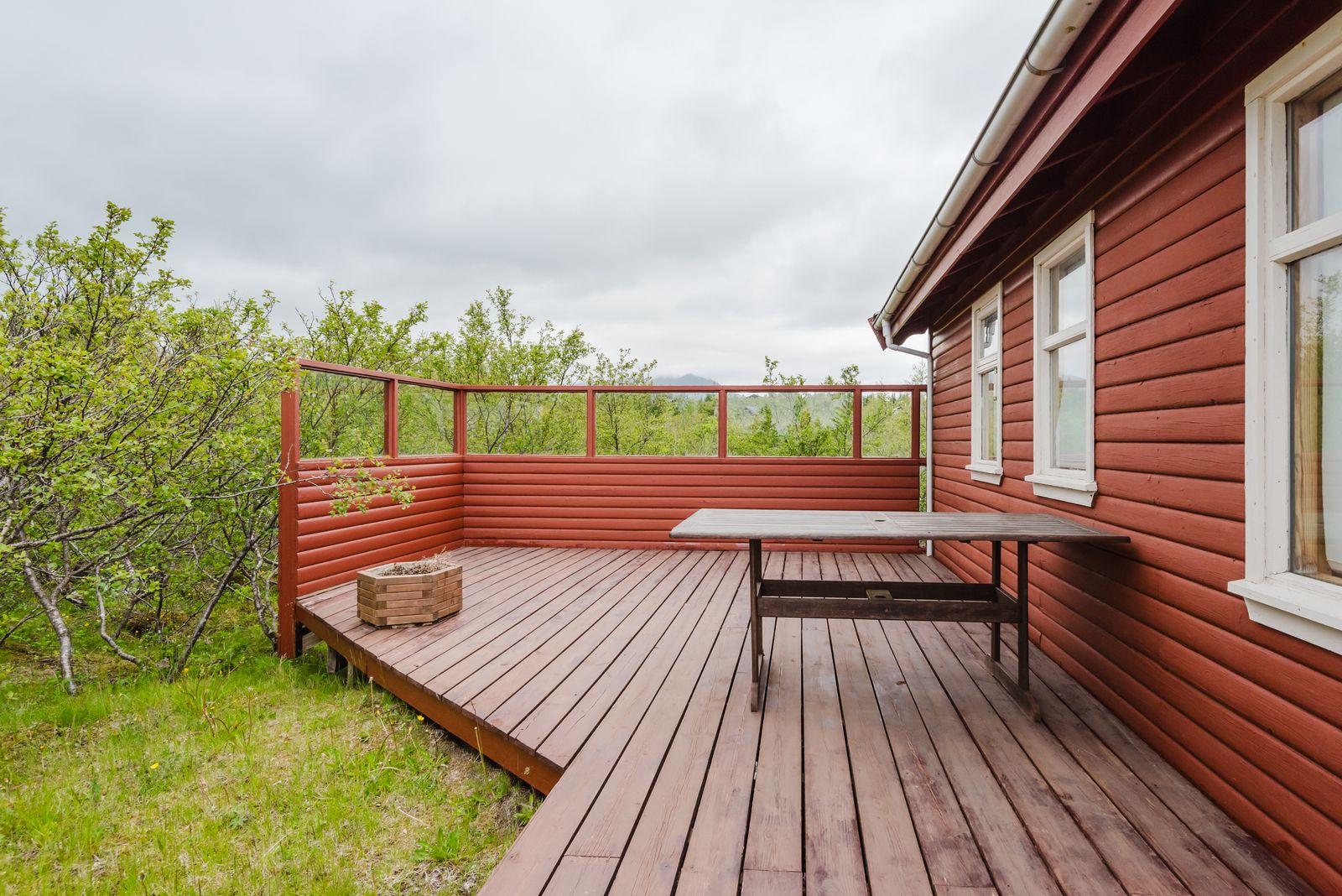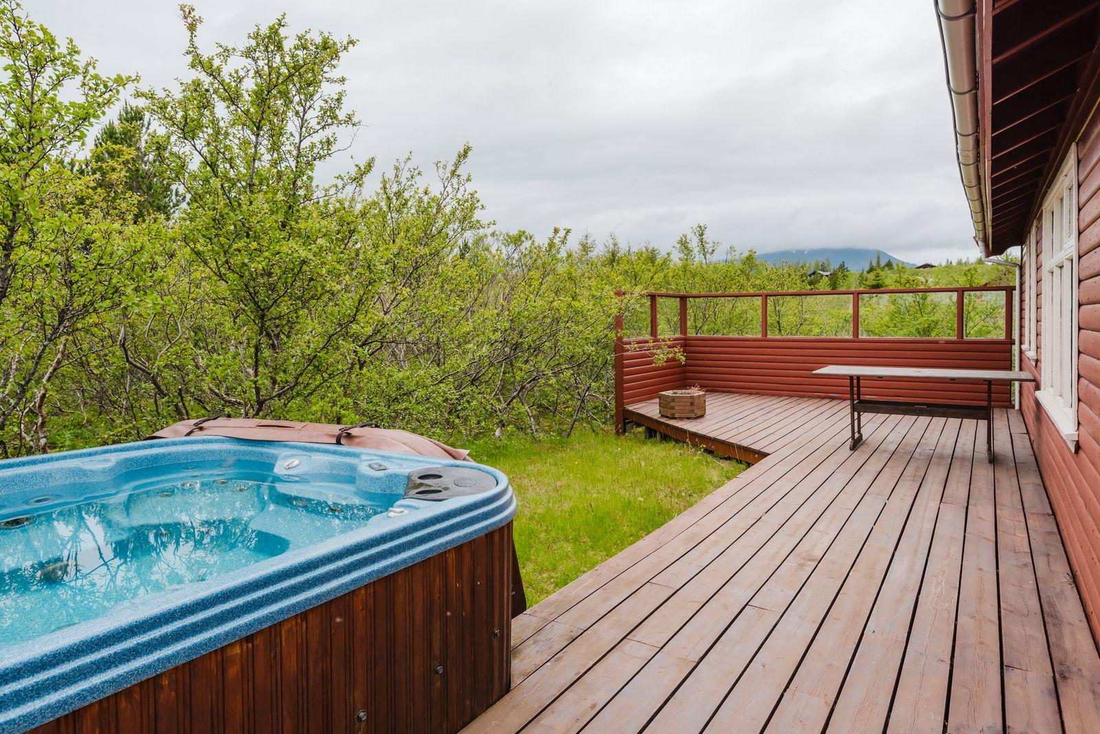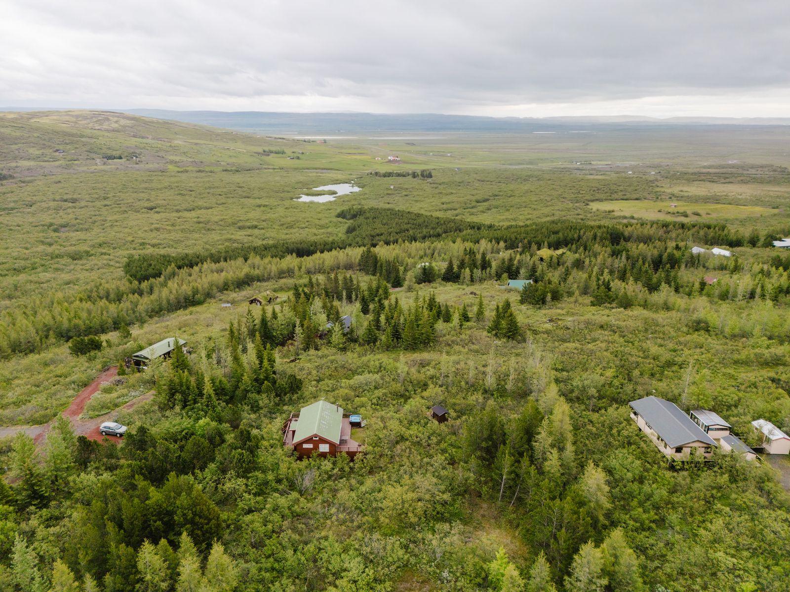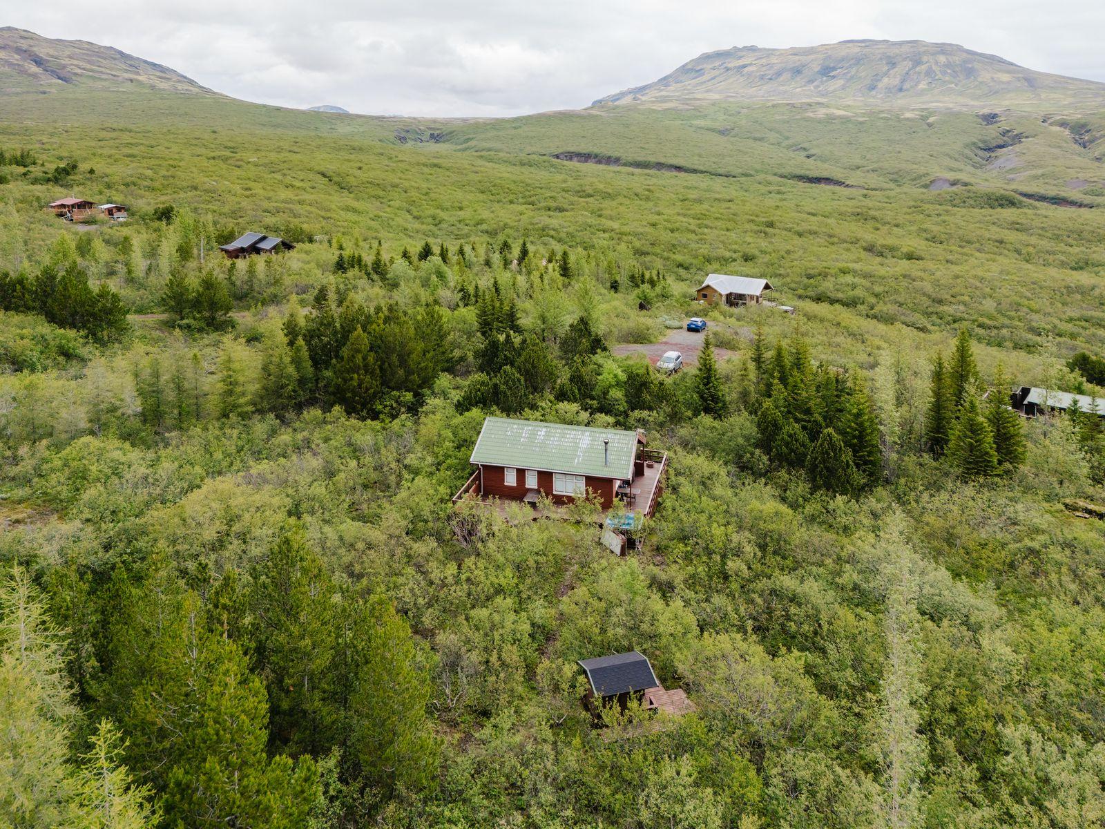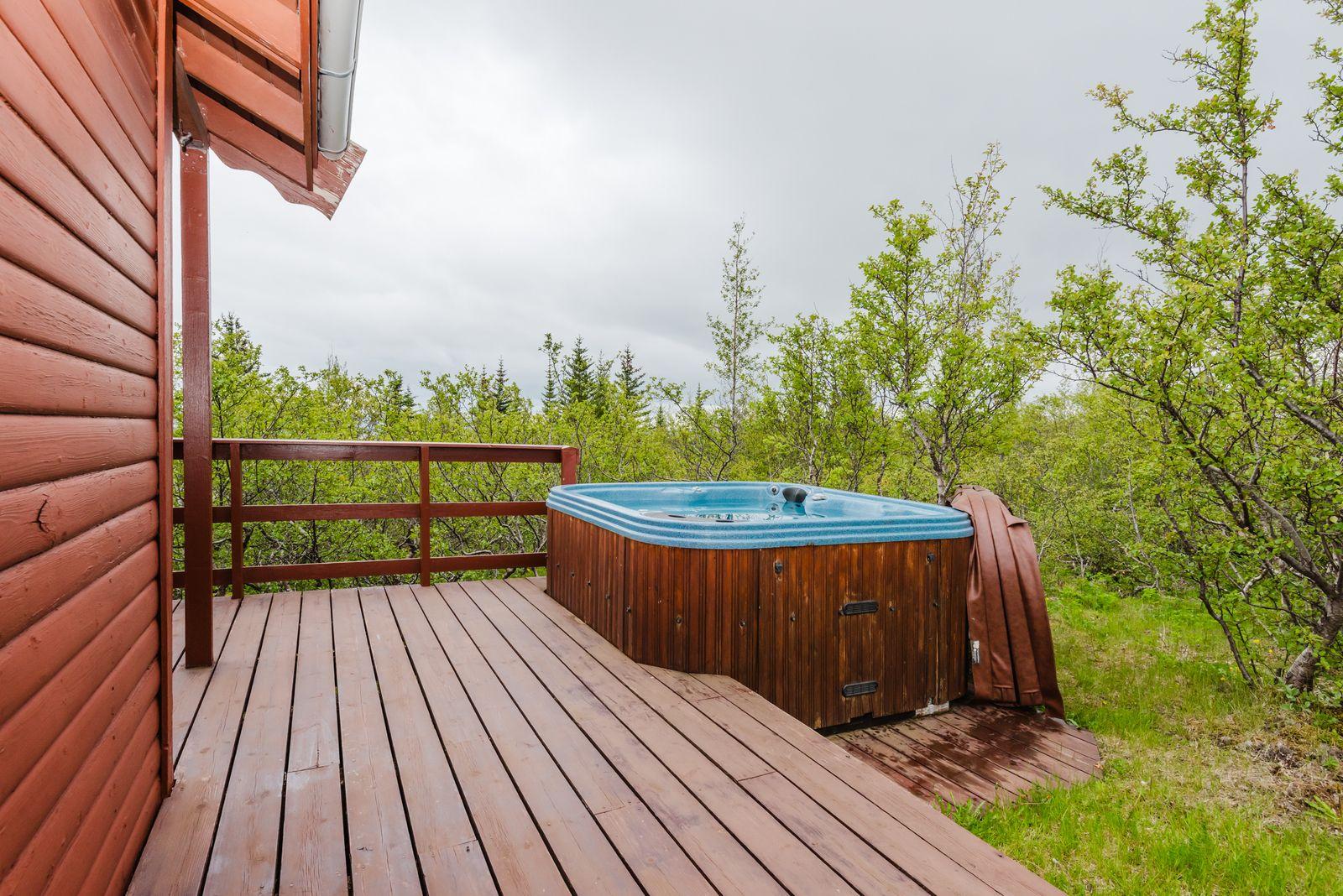 Um ræðir fallegt timburhús 57m2 að grunnfleti byggt 1987. Húsið er klætt með láréttri vatnsklæðningu- vel málað. Góðir pallar umhverfis húsið og heitur pottur ( rafmagns). Járn á þaki. Þakið þarfnast málningar. Að innan er húsið panelklætt með spónaparketti á gólfum. Svefnloft fyrir 2-3. Frárennsli og rotþró var endurnýjað árið 2007. Búið er að skipta um hluta af rúðunum undanfarin ár.