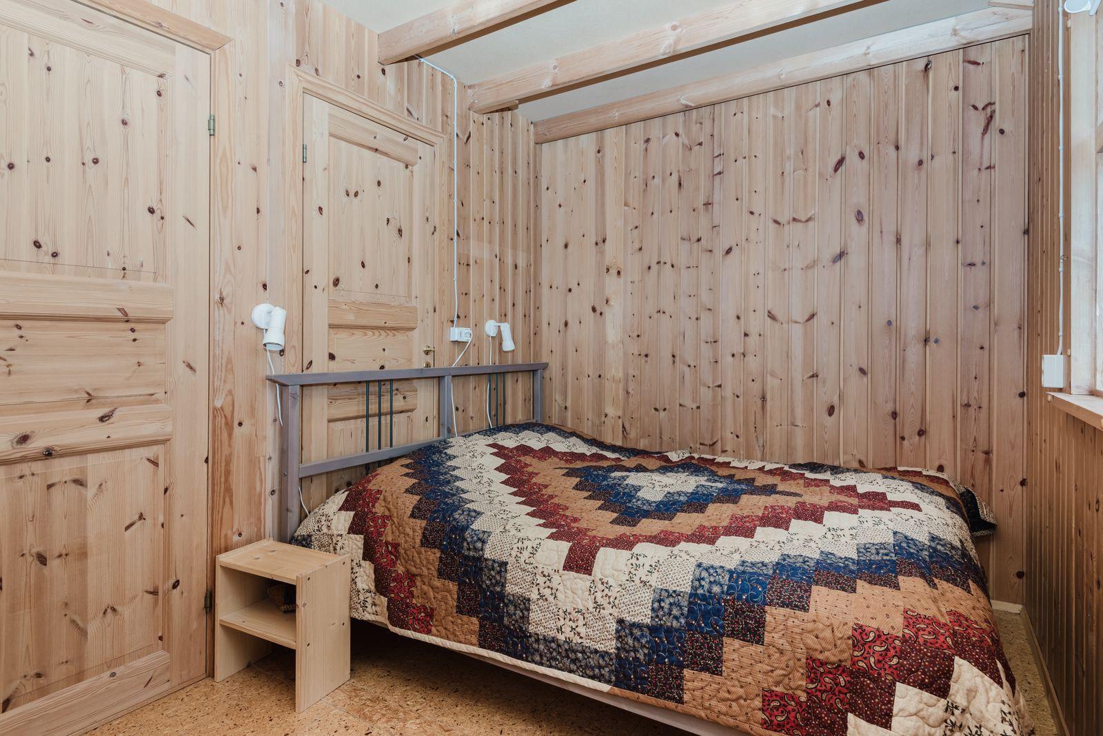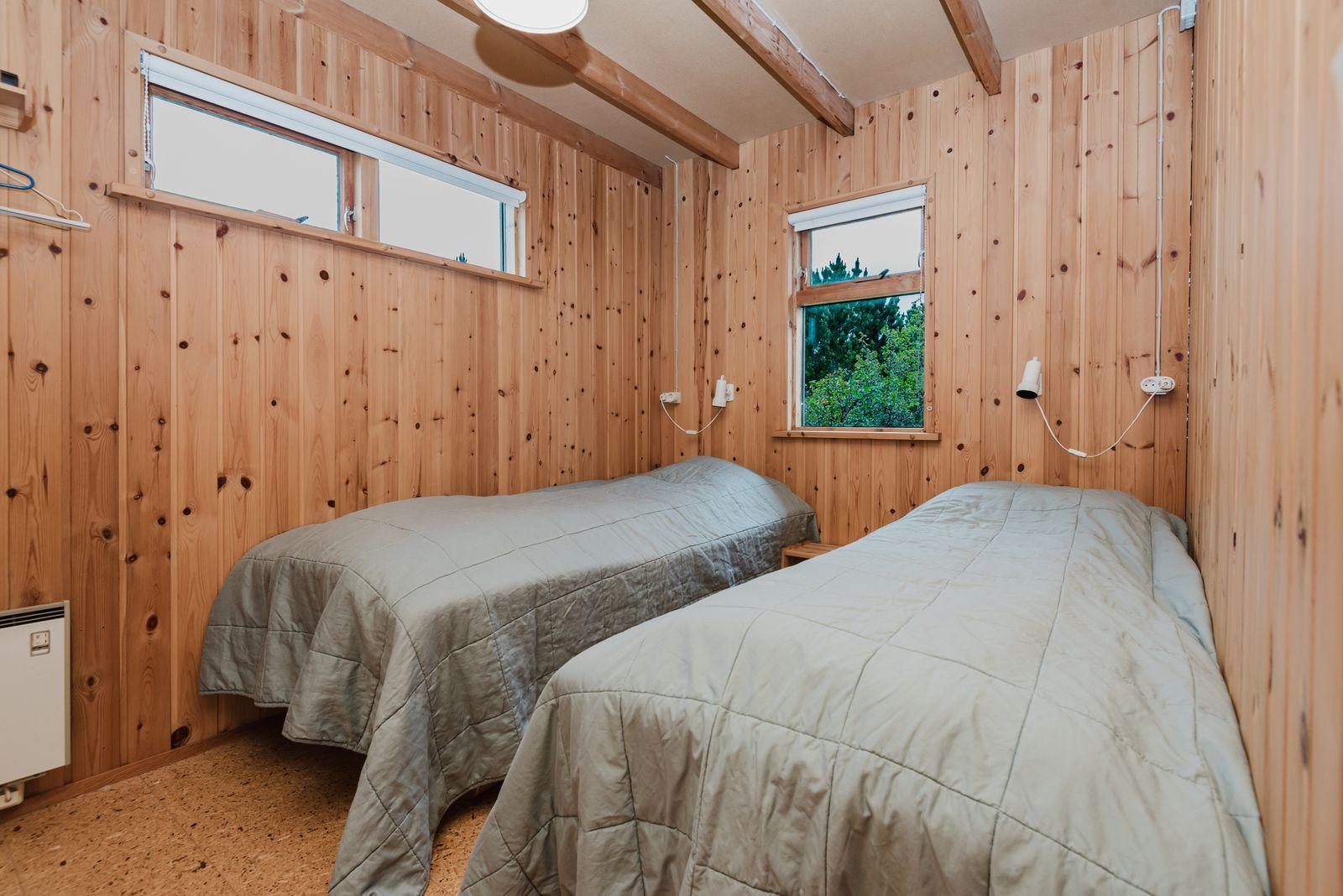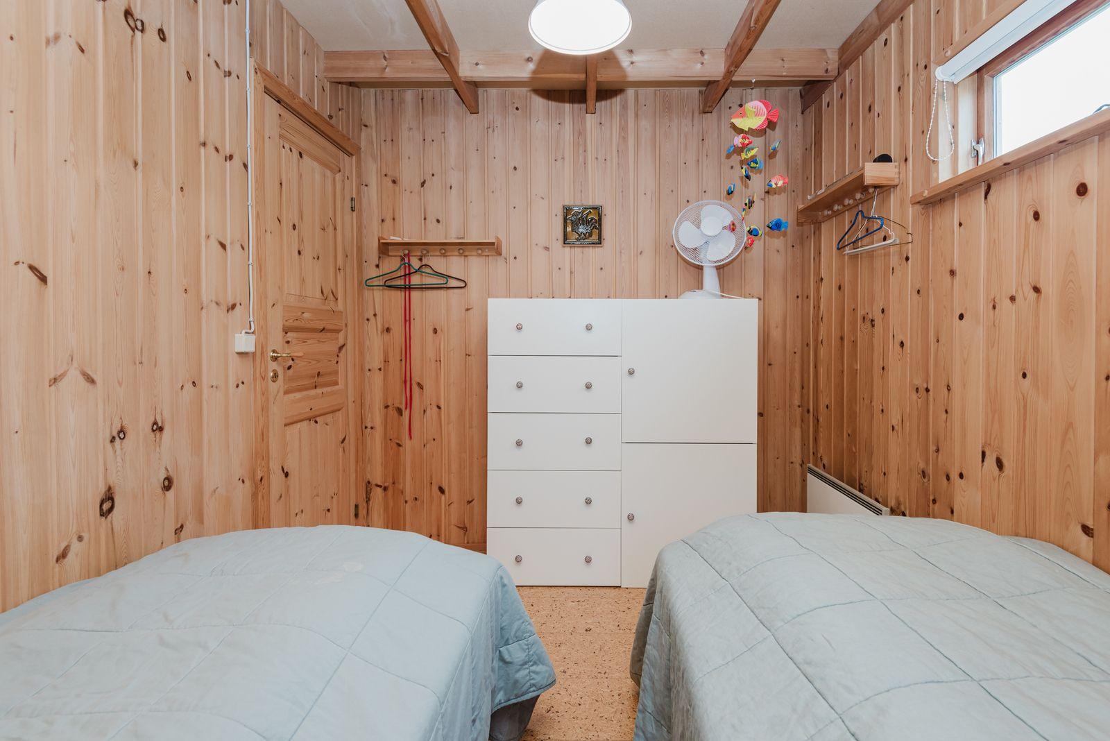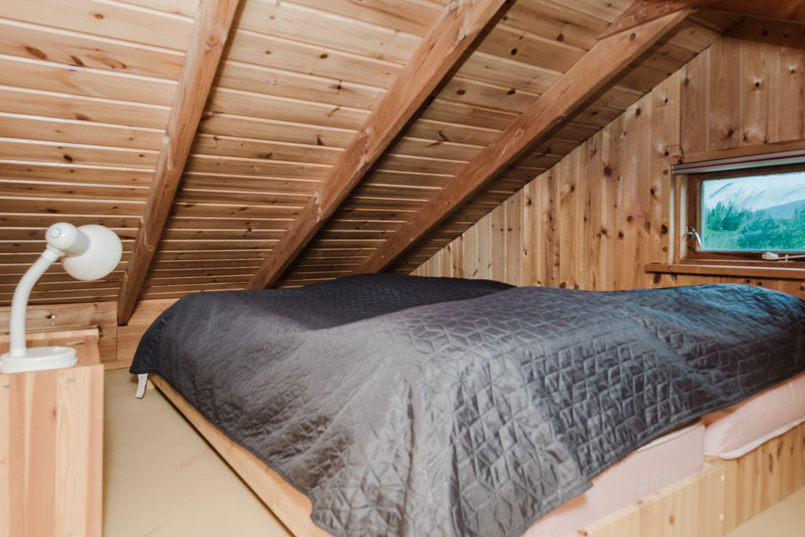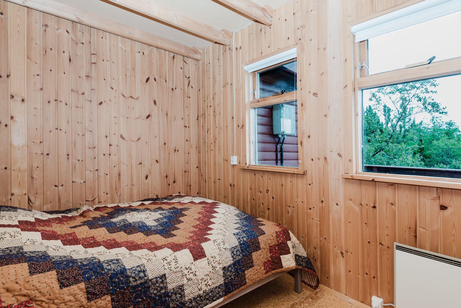 Eignin skiptist í anddyri, stofu/skála, eldhús með upprunalegri innréttingu, baðherbergi og 2 svefnherbergi. Svefnpláss fyrir 6-7 i húsinu – upptekið loft, panelklætt. Kamína í stofunni með strompi. Geymsla er undir pallinum.