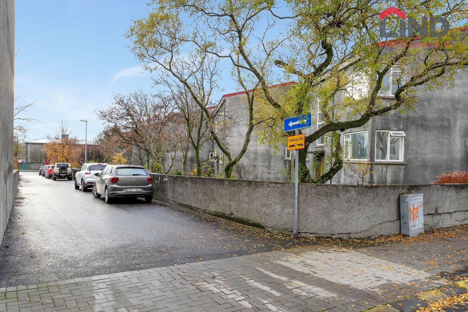 Nánari lýsing eignar – Anddyri / hol: Tengir saman öll rými íbúðar. Innbyggður fataskápur. – Svefnherbergi: Rúmgott með stórum fataskáp. – Stofa: Björt og rúmgóð. – Eldhús: Eldri innrétting, dúk-/flísalagt gólf. – Baðherbergi: Upphengt salerni, sturta, vaskur og flísar á gólfi. – Geymsla: 12,6 fm sérgeymsla í kjallara. – Sameign: Sameiginlegt þvottahús og þurrkherbergi í kjallara. – Garður: Sameiginlegur garður með hlaðnum garðvegg við lóðamörk. Frekari upplýsingar – Húsfélagið Alþýða annast utanumhald og viðhald á sameign og ytra byrði. – Eignin er friðað hús (frá 2011) – friðunin nær til ytra byrðis húss og garðveggja. – Samkvæmt HMS er íbúðin skráð 61,5 fm, þar af 12,6 fm sérgeymsla. Staðsetning Einstök staðsetning í rólegu og eftirsóttu hverfi í göngufæri frá: – fjölbreyttri verslun og þjónustu – miðbæ Reykjavíkur – Vesturbæjarlaug – Kaffihúsi Vesturbæjar – leik-, grunn- og framhaldsskólum