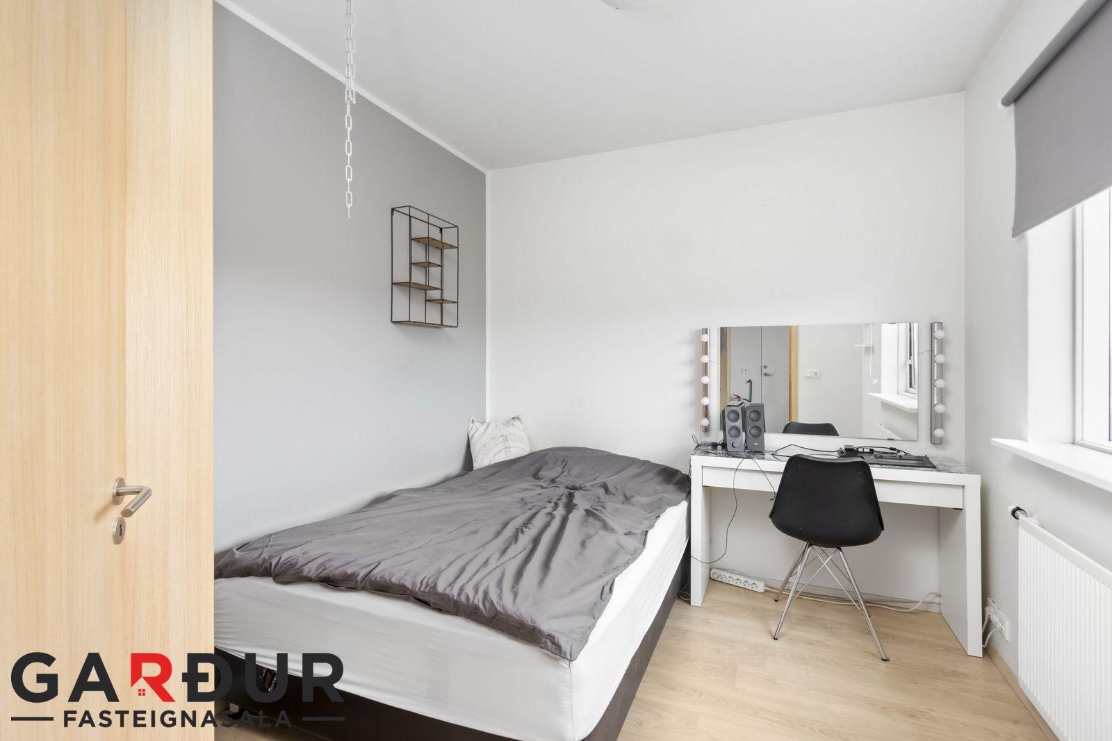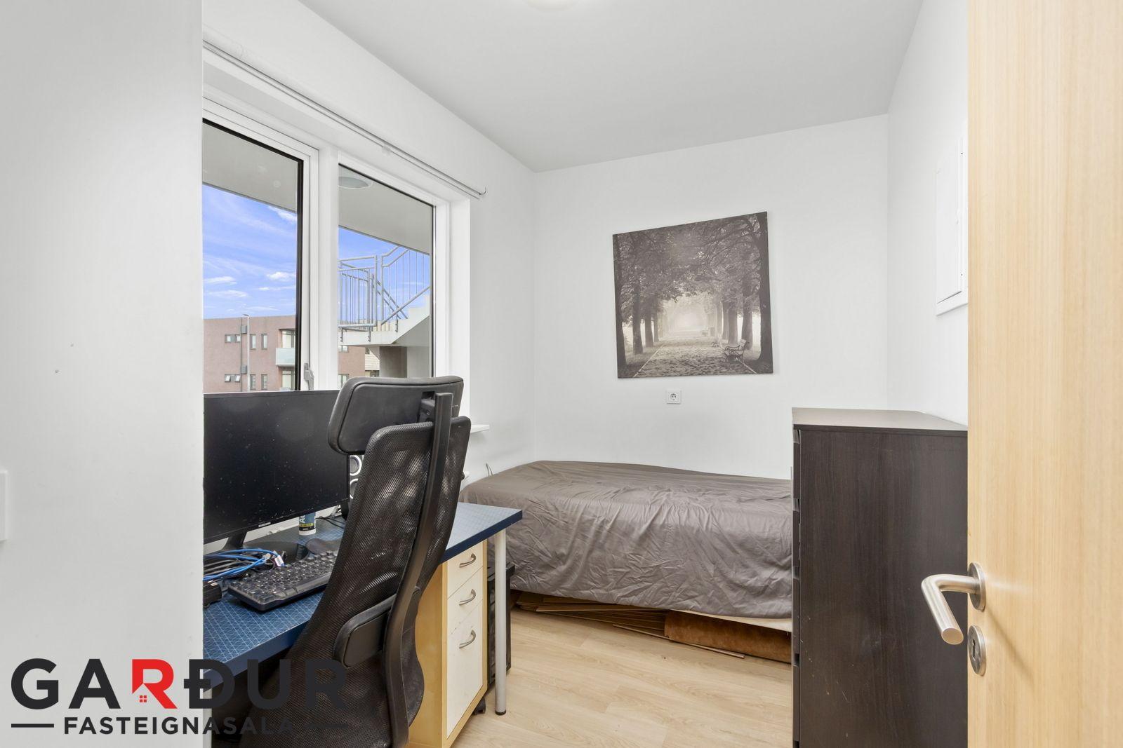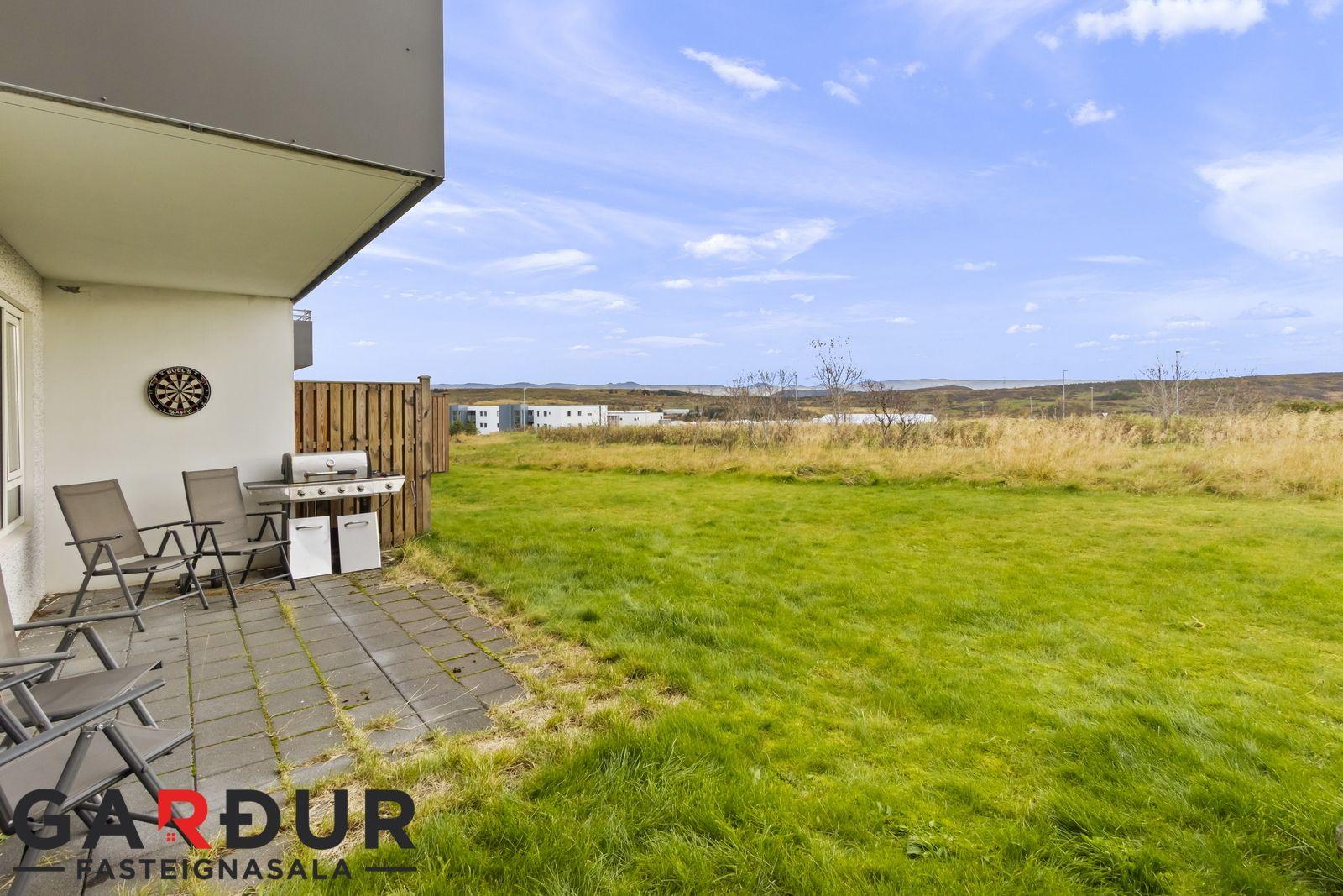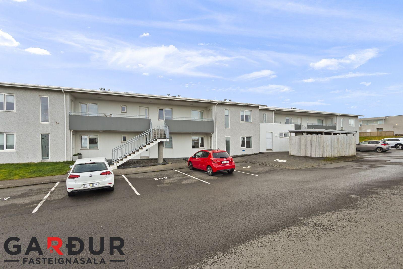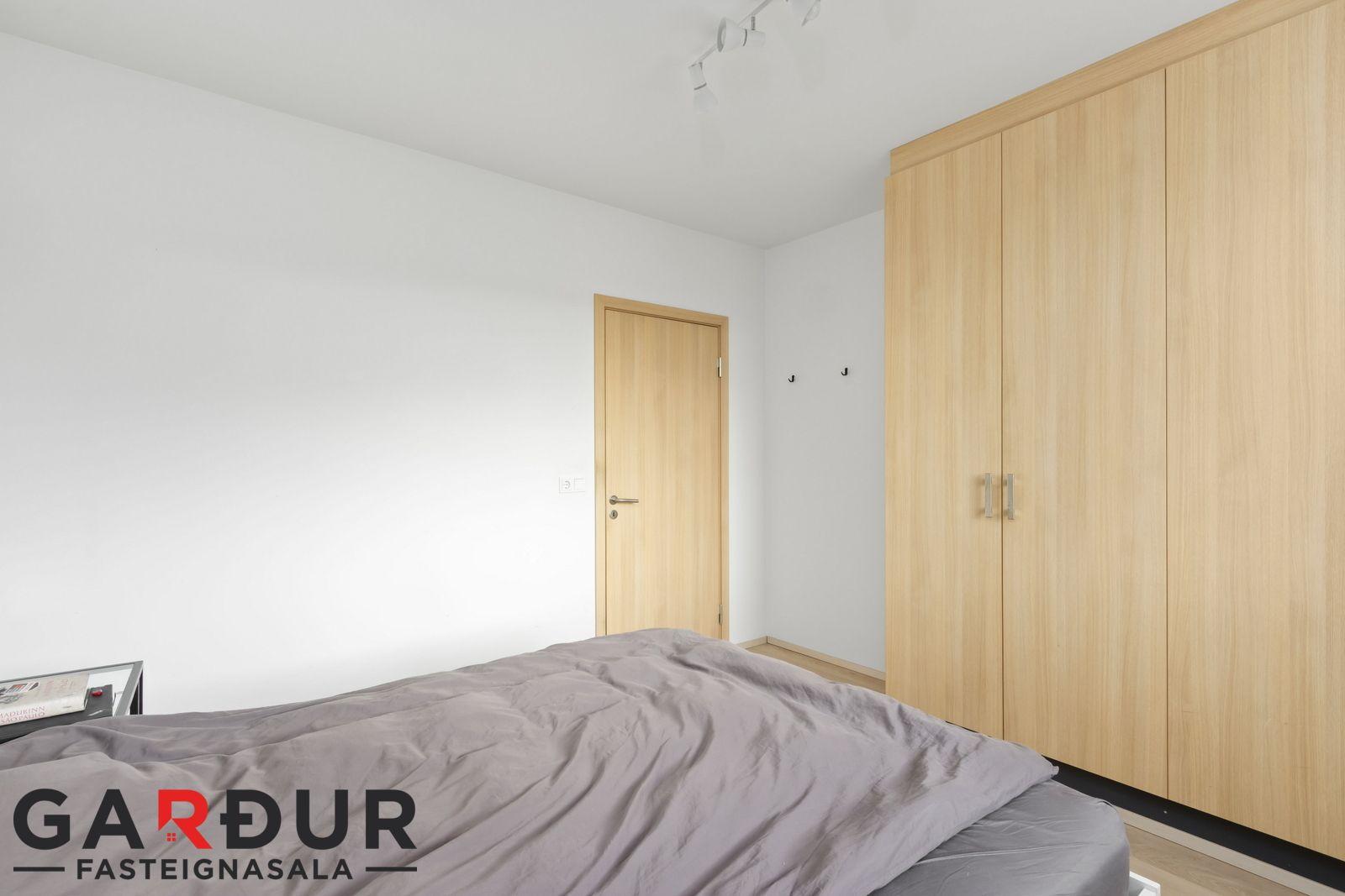Nánari lýsing: Forstofa með fataskáp, flísar á gólfi. Stofa og eldhús eru í opnu alrými með gluggum til suðurs, parket á gólfi og útgengt á sérverönd til suðurs. Möguleiki er á að byggja sólpall. Eldhús, vönduð innrétting með eikaráferð frá Axis, gott vinnupláss og tengi fyrir uppþvottavél, parket á gólfi. Svefnherbergi I með fataskáp, parket á gólfi. Svefnherbergi II með fataskáp, parket á gólfi. Geymsla / svefnherbergi III með glugga og er innan íbúðar, er geymsla á teikningu en notað sem svefnherbergi í dag, parket á gólfi. Baðherbergi, flísalagt með innréttingu og góðum skápum, sturtu og upphengdu salerni. Þvottahús, flísalagt með borðplötu, skolvask, geymslu hillum og aðstöðu fyrir þvottavél og þurrkara.